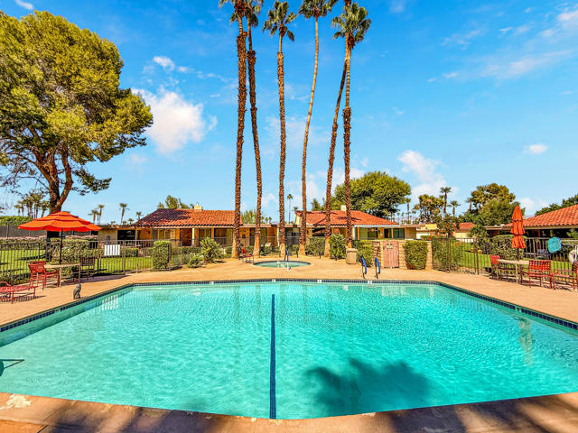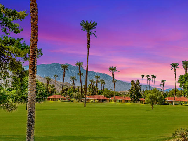 Experience the best of desert living in this beautifully updated 2-bedroom, 2-bath condo, ideally situated just moments from the prestigious country club. Perched in a prime location, this residence offers sweeping southern views of the Santa Rosa Mountains--an ever-changing canvas of light and shadow that transforms every sunset into a private show.Inside, the open-concept layout is designed for effortless flow and natural light. The living and dining areas feature floor-to-ceiling glass that frames the view, while the kitchen boasts sleek granite countertops, white appliances, and ample storage for both casual and gourmet cooking.The spacious primary suite includes direct access to the view patio, perfect for morning coffee or evening wine. For an added touch of relaxation, step into a soothing and serene sauna. A second bedroom offers flexibility for guests or a home office.Community amenities include sparkling pools and spas, and lush landscaping--all just steps from world-class golf, dining, and social events at the nearby country club.Whether you're seeking a full-time residence or a seasonal escape, this condo delivers location, lifestyle, and luxury in one perfect package.