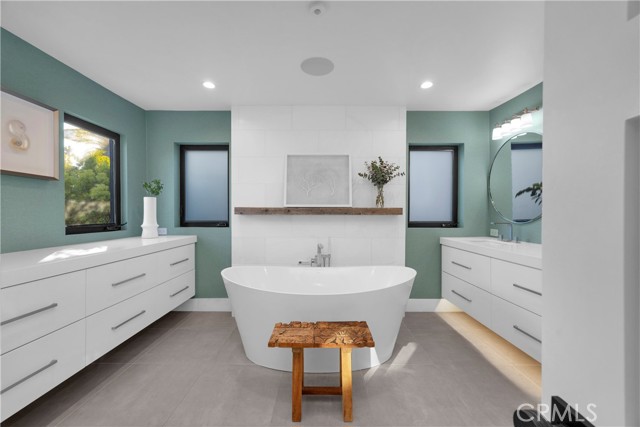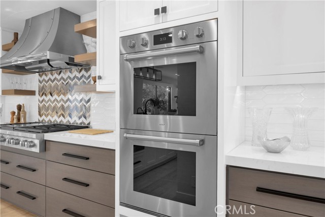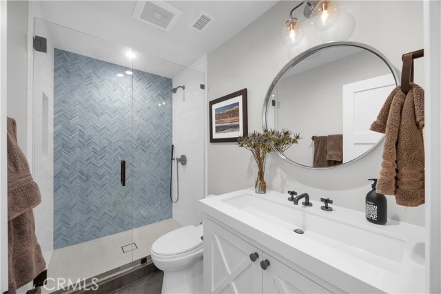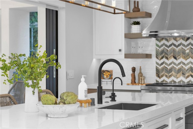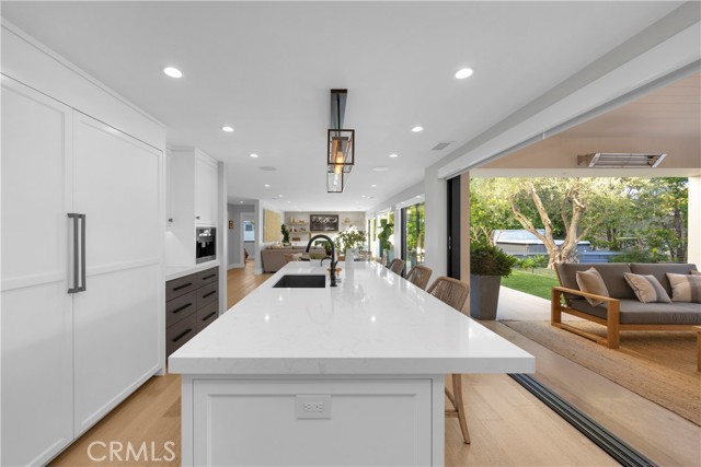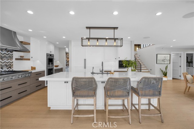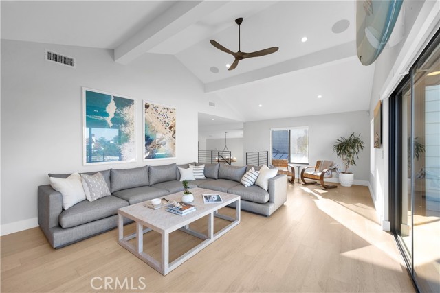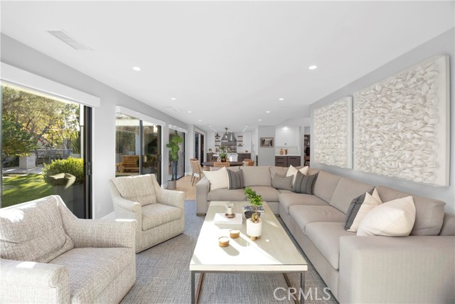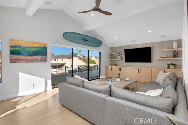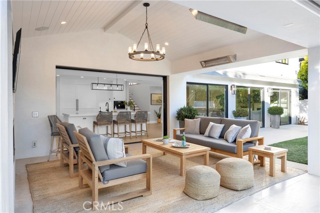 Set in the coveted SeaCliff neighborhood of Huntington Beach, this coastal modern home has been completely rebuilt with premium craftsmanship and high-end finishes. Inspired by The Surfrider boutique hotel and classic California surf culture, the home delivers an elevated beach-resort feel throughout. Taken essentially to the studs in 2017, it features updated electrical, plumbing, insulation, and a metal roof. The chef-inspired kitchen opens to a spacious living area with a custom fireplace and includes a SubZero refrigerator with custom panels, Wolf 6-burner range with griddle, double convection oven, warming drawer, built-in Miele coffee maker, quartz counters, and the signature “whale tail” backsplash. LaCantina pocket doors expand the space to the backyard “California room,” surrounded by custom landscaping with grapevines, succulents, plumeria, mature crane-placed trees, stone tile, turf, custom awnings, a built-in Sedona BBQ, and an elevated Caldera spa. A downstairs bedroom with nearby full bath adds convenience. Upstairs, a generous lounge with built-ins anchors the second level. The primary suite features a large walk-in closet with reclaimed wood barn doors and a spa-style bath with jetted tub, walk-in shower, and dual sinks. Additional highlights include white oak flooring, Lincs audio, Lutron lighting, Anne Sacks tile accents, custom wallpaper, central cooling, automated sprinklers/drip system, and an outdoor shower. Just minutes from the beach and top-rated SeaCliff schools, this home offers luxury coastal living at its finest.