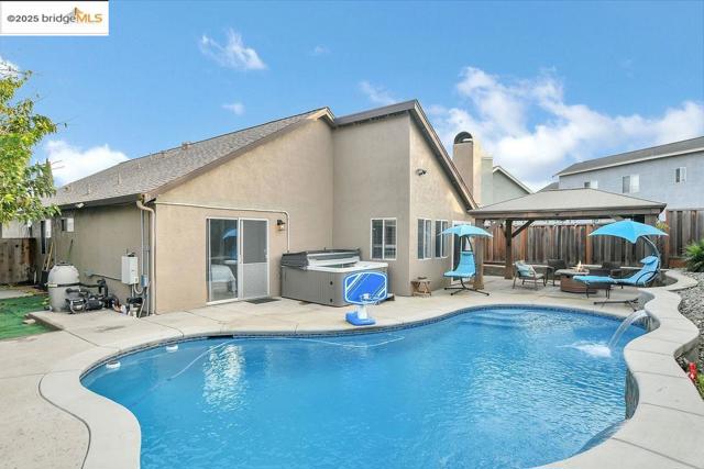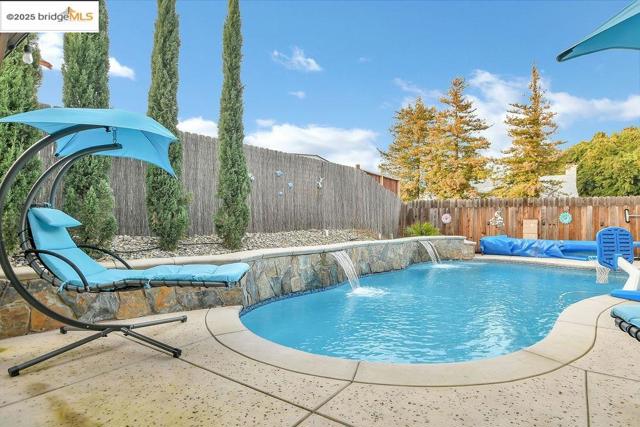 Discover this beautifully maintained single story home in Oakley's Vintage Parkway neighborhood! Featuring 3 bedrooms, 2 bathrooms, and a spacious floor plan perfect for comfortable everyday living. This home includes an updated kitchen, an oversized family room with a cozy fireplace, and convenient indoor laundry. The primary suite is complete with two closets, a jetted soaking tub, separate shower, double sinks, and a slider with direct access to the backyard. Step outside to your own private retreat with a sparkling pool, above ground hot tub, and covered pergola- ideal for outdoor entertaining. Situated on a spacious corner lot, this home also offers RV parking and a 3-car garage. Located near shopping, parks, schools, and just minutes from Big Break Marina!
