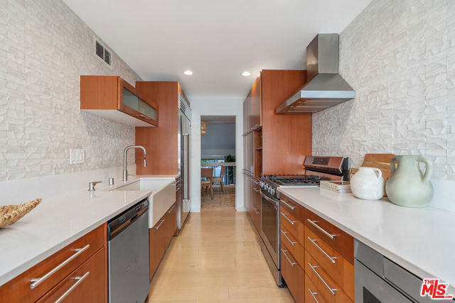 Ideally situated in the coveted Villa Castilla community in the heart of Warner Center and walking distance to the Village, this beautifully updated end unit townhome offers refined comfort and effortless living. The spacious 1,416 sq ft layout includes 2 bedrooms and 2 bathrooms, a gourmet chef's kitchen with a generous dining room with bar area, a private outdoor patio, an attached 2-car garage, and an inviting open-concept living room highlighted by a fireplace. Newly updated chefs kitchen with premium appliances and custom cabinetry featuring a great breakfast dining area. The primary suite is a true retreat, featuring soaring ceilings, walk in custom closet and second closet, an en-suite bath, and a wall of windows that fills the space with natural light while overlooking the serene community courtyard, pool, and spa. Incredible entry level private patio with trex decking and a large 2 car garage with plenty of storage space! Just moments from Westfield Topanga, The Village, Equinox, Shoup Park, premier dining on Ventura Boulevard, and quick 101 freeway access, this exceptional location offers unmatched convenience and a lifestyle of ease.