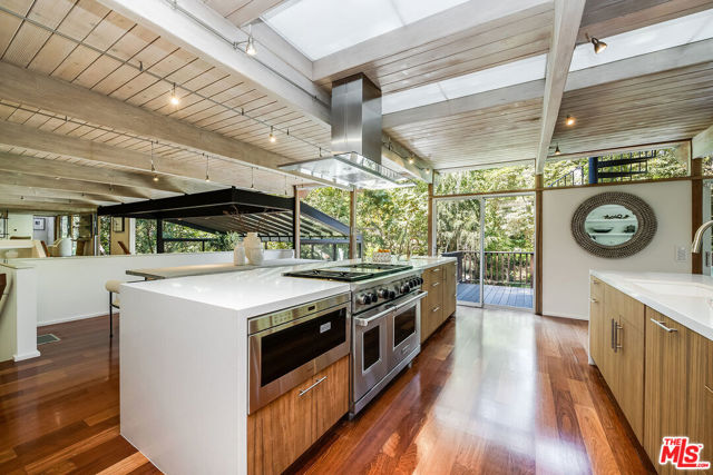Beyond a gated entrance in Rustic Canyon, this exceptional and unique property unfolds across over 3/4 of an acre of land, with organically landscaped grounds, offering a rare blend of architectural distinction and natural beauty. This residence (5 bedrooms/5 baths) and brand new kitchen -is a bold and timeless architectural statement, with soaring lines and walls of glass that invite in light and frame tranquil vistas. (A separate guest house is also available for sale with this property). A picturesque creek winds through the property creating a meditative backdrop for daily living. Expansive terraces and garden pathways invite gatherings and natural settings for reflection. Designed for those who value balance, this estate embodies a retreat-like atmosphere - equally suited for spiritual renewal and entertaining. This is a rare opportunity to own an exclusive estate where architecture, lifestyle and nature exist in perfect harmony. A must see!