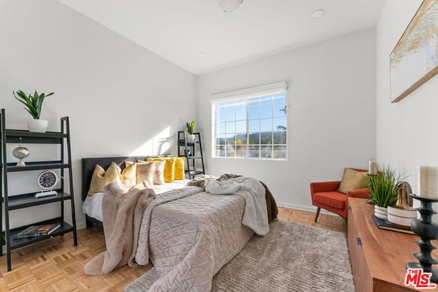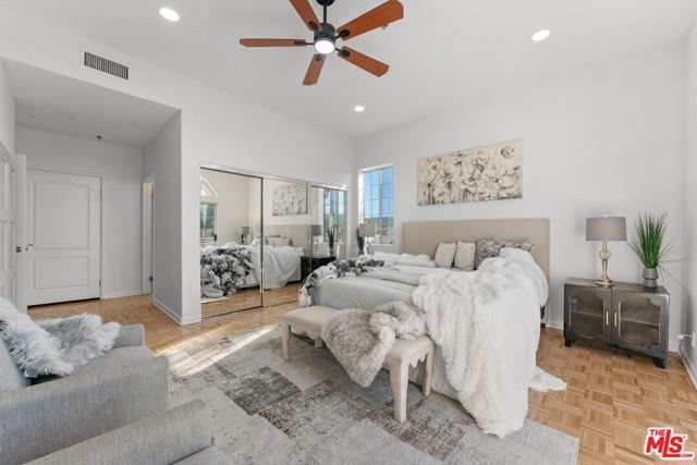 Move-in ready West-facing penthouse spanning the entire front of the building with sweeping sunset views and three private balconies, including a wraparound balcony off the dining area. This top-floor home features 10' ceilings, floor-to-ceiling windows and an open living, dining and den layout filled with natural light. The remodeled kitchen includes quartz counters, stainless-steel appliances and a pantry with pull-out drawers. The primary suite offers two closets (including a walk-in) and a spa-like bath with dual sinks, a soaking tub and a separate shower. The generous second en-suite bedroom overlooks the Sherman Oaks hills. Additional features include parquet wood floors, in-unit laundry, a guest powder room, excellent storage and a newer HVAC system. Two tandem parking spaces included. The secure building offers three guest parking spaces, and HOA dues include water and earthquake insurance. Prime Sherman Oaks location moments from Ventura Boulevard, great restaurants, Ralphs, Fashion Square and quick access to the 101/405 and nearby canyon routes.