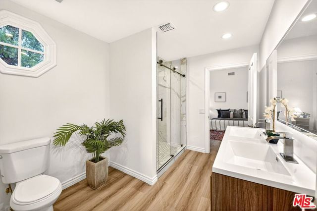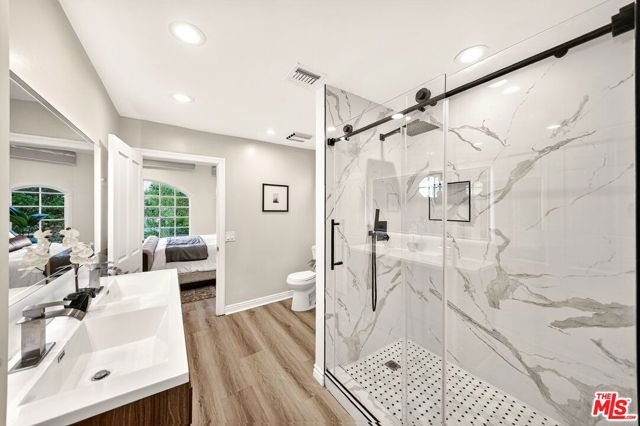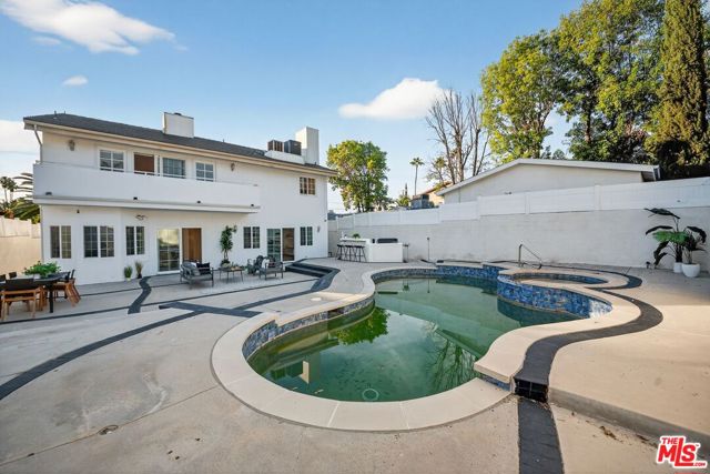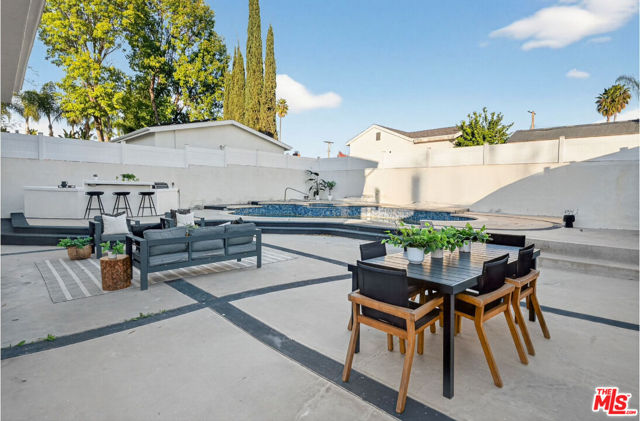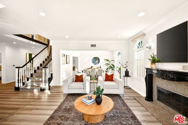 Welcome to this charming and beautifully remodeled Tudor Revival residence in Tarzana spacious 4,273 Sq ft home perfectly situated on a generous 7,057 Sq ft lot, offering 5 bedrooms, 5 bathrooms, plus a versatile bonus room ideal for a private office. Nestled on a peaceful, tree-lined street, this home blends timeless European character with modern upgrades throughout.Step inside to a bright, open living room featuring an elegant fireplace, updated flooring, fresh paint, new recessed lighting, and large Tudor-style windows that bathe the space in natural light. The seamless flow creates an inviting atmosphere perfect for both entertaining and everyday living. Adjacent to the living room is a remodeled family room with new finishes and a cozy ambiance ideal for gatherings and movie nights.The dining area sits perfectly between the living room and kitchen, enhanced with beautiful lighting and a refreshed, elegant feel. The remodeled kitchen is the true heart of the home, offering modern cabinetry, sleek quartz countertops, premium hardware, stainless-steel appliances, and an optimized layout that blends style with practicality.For added convenience, the home includes a dedicated laundry area with updated cabinetry and easy access providing both functionality and comfort for daily household needs.This exceptional floor plan also features ''one full bedroom with its own private bathroom on the first level'', offering ease for guests, extended family, or those seeking ground-floor living.Upstairs, the additional 4 bedrooms are generously sized and thoughtfully remodeled with updated flooring, fresh paint, recessed lighting, and spacious closets. The impressive primary suite features its own private fireplace, creating a warm and luxurious retreat. The bonus room on this level serves perfectly as a home office, gym, nursery, or creative studio.All five bathrooms have been beautifully remodeled with new vanities, modern countertops, designer tile, premium fixtures, and refreshed shower and tub areas, bringing a spa-like experience to daily living.Step outside to a private backyard oasis surrounded by mature landscaping ideal for alfresco dining, weekend entertaining, or simply unwinding in a serene outdoor setting. Updated exterior touches enhance the home's striking Tudor curb appeal.Perfectly located south of Ventura Blvd, the accessibility just minutes from the 101 Freeway, Whole Foods, Gelson's, Tarzana Village Walk, Westfield Topanga & The Village, and the vibrant dining and shopping along Ventura Blvd. Nearby are Tarzana Recreation Center, Caballero Canyon hiking trails, golf and country clubs, and highly regarded schools such as Wilbur Charter, Portola Middle School, and Taft Charter High (buyer to verify), An incredible opportunity at the best price this Tarzana gem is waiting for you.