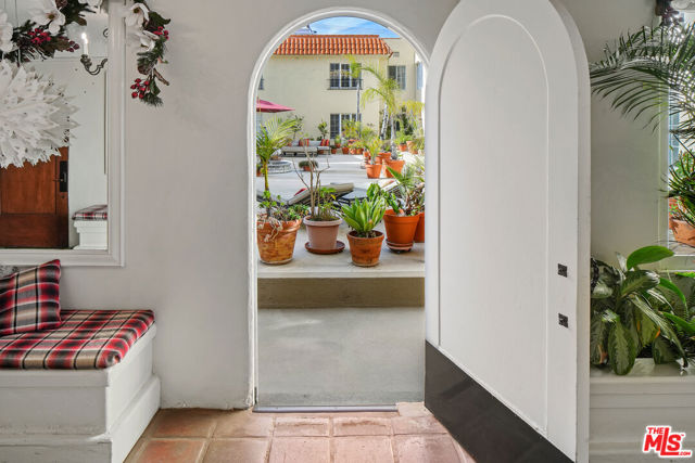Welcome home to Hayworth Gardens! A desirable Spanish style oasis in West Hollywood. The building welcomes you with Spanish tiles, hand painted murals and the sounds of a fountain surrounded by lush greenery in the open courtyard. On the top floor quietly situated facing north, the home fills with natural light from its large windows all facing the beautiful courtyard. Gorgeous two bedroom and 1 bathroom unit with hardwood floors throughout. The unit has updated bathroom, kitchen, lighting, and also recently had central air air/heat installed. Unit comes with access to private storage room where you'll have access to a private storage locker to house all your tools, decorations, bikes, etc. Two outdoor gated parking spots. The building has secure entry, gated parking, an entirely gated building, security cameras, daily cleaning of common areas and weekly garden maintenance, mailboxes, secure Amazon access, and a wonderful friendly community! All utilities included in the HOA fee!