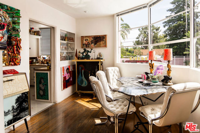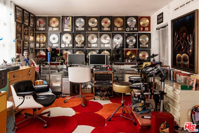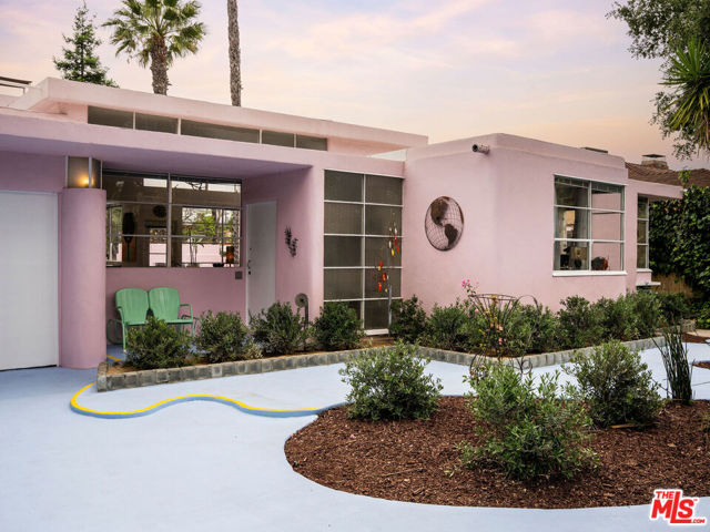 Presenting an excellent opportunity for the modern collector, Hollywood history buff, or developer/builder/end-user: An original portfolio piece by American architect William Kesling, known for designing a historic collection of homes in the Streamline Moderne style (a subtype of Art Deco aptly dubbed "ocean liner" style by the French) throughout Los Angeles. Given its close proximity to studios, there's no surprise that it was originally used as a party haven for Hollywood's tastemakers, but that was just the beginning. In 1980, this iconic residence was purchased by two-time Grammy-winning, Emmy- and Tony-nominated songwriter and art director Allee Willis, and the rest is nothing short of music history. Willis gave the architectural diamond its baby pink hue, but otherwise preserved its original identity while performing a complete restoration. Here, the former Motown Records dreamer would host lavish gatherings and themed jamborees which quickly became notorious throughout Hollywood's social circles, her exclusive guest list including the likes of Cher and Joni Mitchell. The home would also serve as the birthplace of her vast body of work, resulting in a long list of smash-hit songs such as "September" and "Boogie Wonderland" by Earth, Wind & Fire, "Neutron Dance" by The Pointer Sisters, and "I'll Be There for You," the indelible theme song of NBC's hit television show Friends. Over the years, she welcomed legendary recording artists and collaborators to the on-site state-of-the-art music studio (James Brown, Bob Dylan, and Cyndi Lauper are just a few). With an insatiable desire to create, she also sculpted and painted numerous art pieces. Willis was also an avid collector, adorning her home with countless pop culture treasures from the 1950s, '60s, '70s, and '80s. Of her penchant for throwing parties, Willis notably once said in an interview, "I always had a music career, an art career, set designer, film and video, technology. The parties really became the only place I could combine everything." Her storied festivities have been covered in publications as diverse as People, Life, The New York Times, The Wall Street Journal, and Rolling Stone. Beneath towering palms, the '50s-inspired grounds feature a bowling-ball garden, private sand beach, and newly built poolside shower for the modern reveler.