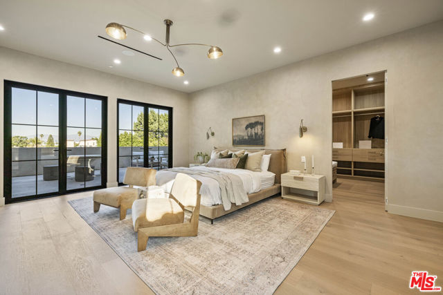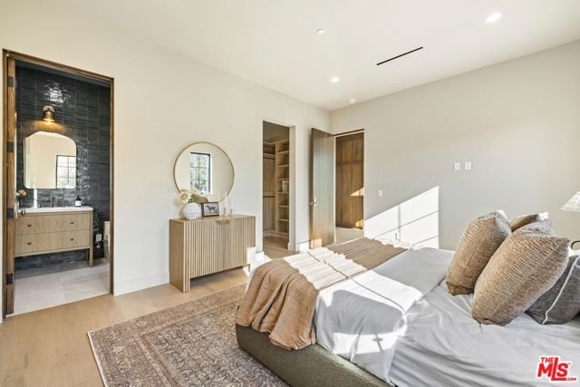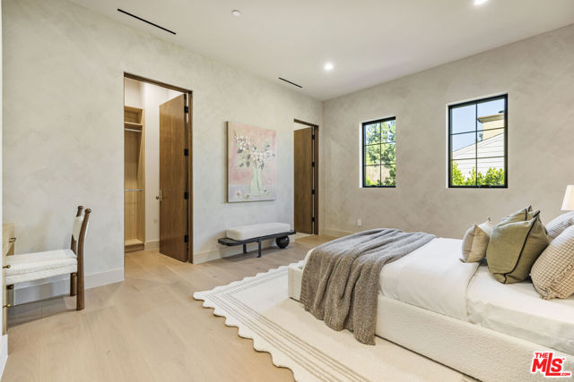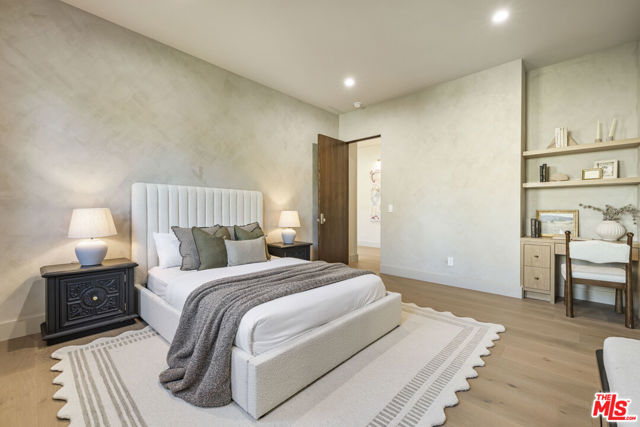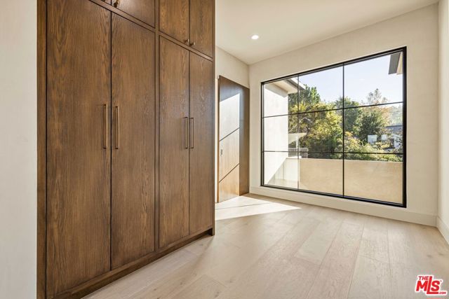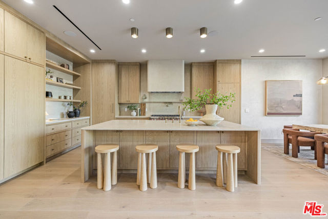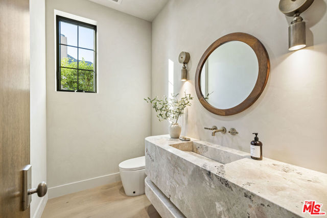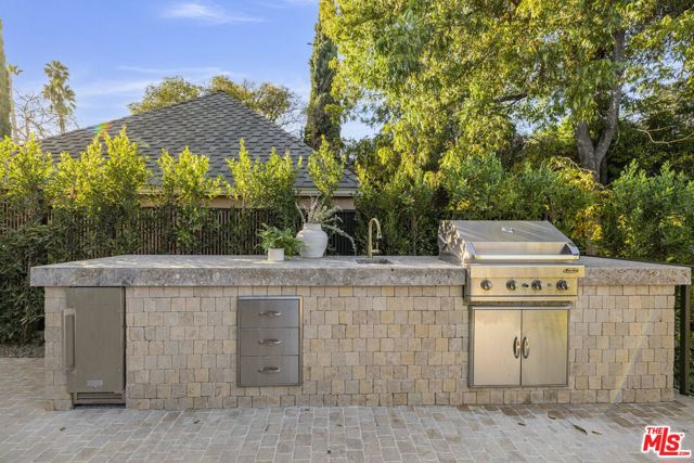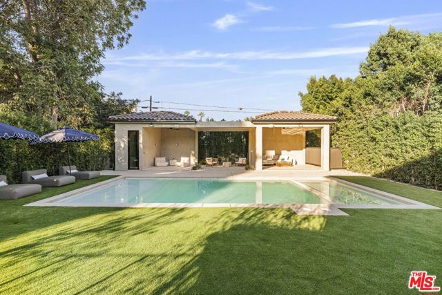 Welcome to Casa Verde, one of the largest and most extraordinary homes ever built south of the Boulevard in Sherman Oaks. Set on an expansive 13,000 sq ft lot, this 5-bed, 7-bath estate blends timeless European influence with high-end contemporary design, featuring hand-applied limewashed walls, a sculptural plaster staircase, and natural light pouring in from every angle. Step through the custom oversized pivot door and you're immediately met with soaring ceilings and a floor plan crafted for true indoor/outdoor entertaining. A large custom bar sits at the center of the home, creating a stunning focal point and seamless flow into the expansive dining area, where floor-to-ceiling sliders open to a private outdoor sanctuary anchored by a limestone fireplace. The chef's kitchen features custom white oak cabinetry, travertine counters, and panel-ready appliances that disappear into the design. A hidden butler's kitchen with its own cooktop, sink, dishwasher, and walk-in pantry keeps prep work tucked away when hosting. The generous family room opens to the oversized backyard with ample patio space, an outdoor kitchen, large pool, two covered cabanas, and a full bathroom. The main floor is completed with a large home theater, office, bedroom and reading nook. Upstairs are 4 additional bedrooms, each with its own en-suite bath and walk-in closet. The oversized primary suite offers a floor-to-ceiling stone fireplace, two balconies, an expansive walk-in closet, and a private bonus room ideal as a yoga studio, nursery, or second closet. The spa-like bathroom features a large zellige-tiled rain shower, freestanding tub with mountain views, makeup vanity, and dual water closets.Tucked in an exceptional walkable pocket, Casa Verde is moments from some of the city's best restaurants and coffee shops, Anajak Thai, Bacari, The Blvd, Cream, and more, as well as The Buckley School. This is a rare opportunity to own a statement property defined by scale, design, and craftsmanship.