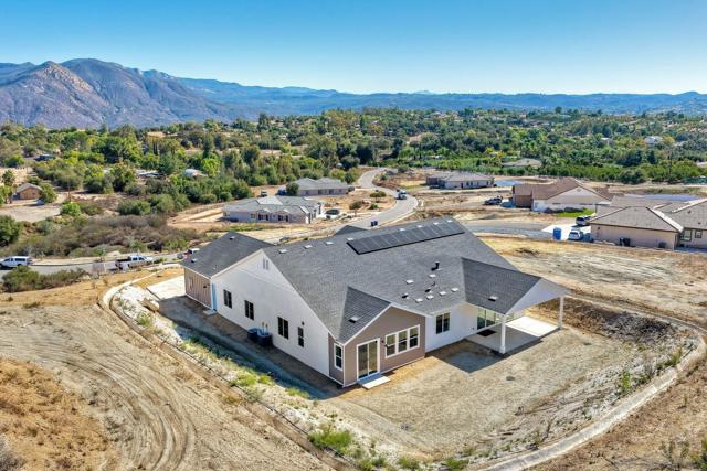 Final Home! New Construction, ask about builder paid interest rate buydown starting at 4.5%, surrounded with panoramic views, set in the foothills of Valley Center on a new cul-de-sac, New Pointe Communities proudly presents this final series of single level estate homes presented on 2 acre plus elevated lots. This home is the plan 3, the largest model, a rare 5 bedroom plus bonus room. The great room features a fireplace and high ceilings, led lighting. Open concept living with a functional gourmet kitchen featuring white shaker cabinets and quartz countertops with generous center island and walk in pantry. An upgraded stainless steel appliance package, propane gas range and a built-in 48 inch GE Monogram Refrigerator/Freezer. Well appointed primary suite and master bath with large walk-in closet, dual vanities and a luxurious freestanding soaking tub, elegant standalone shower. Two secondary bedrooms with a shared full bath and two ensuite bedrooms with private full bathrooms. Functional outdoor entertainment space in the California patio outdoor sitting area accessed through gorgeous oversized sliding doors. Generous indoor laundry room with sink and storage, owned solar system included. Home includes a 1 year fit and finish warranty, No HOA room for RV, Boat and Trailer parking, very usable lots for an elaborate outdoor living space or swimming pool. Near local golf courses, wineries and casinos. Ask us about our current incentives!