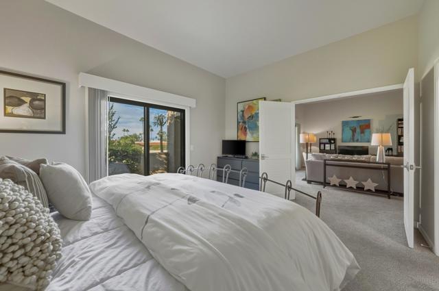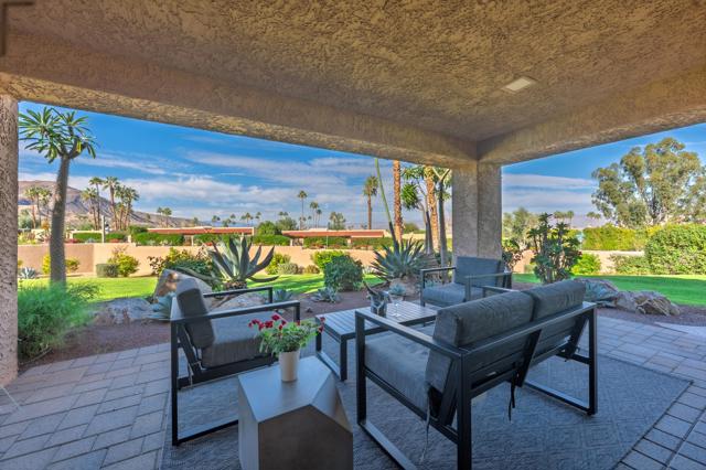 Behind the guard-gated community of Ironwood Country Club and set at the end of a quiet cul-de-sac, this beautifully maintained two-bedroom, two-bath residence offers a comfortable and refined way of living. The exterior presents an attractive first impression with interlocking pavers and a spacious private entry courtyard enhanced by custom desert landscaping. The interior layout is exceptionally functional, featuring a split floor plan with bedrooms on opposite sides of the home--each with its own remodeled bath. Upgraded tile and carpeting complement the relaxed, contemporary style throughout. The kitchen opens to the dining and living areas, where high vaulted ceilings create an airy atmosphere and frame views in every direction. Updated, energy-efficient windows and sliding doors add to the home's comfort. The covered back patio provides an inviting retreat with unobstructed, sweeping mountain and valley views--an ideal setting for morning or evening gatherings. Additional features include a double-car garage and convenient proximity to one of the community's many pools and spas just a short walk away. Ironwood is one of South Palm Desert's most desirable communities, situated next to The Living Desert and minutes from El Paseo's renowned shopping, restaurants, art galleries, and cafes. Residents enjoy a selection of membership opportunities, ranging from social to golf, with access to two championship courses, a beautifully appointed clubhouse, dining, fitness, tennis, pickleball, bocce, and numerous clubs for hiking, wine enthusiasts, cycling, art, and more. A property that captures the best of desert living--both serene and sophisticated.