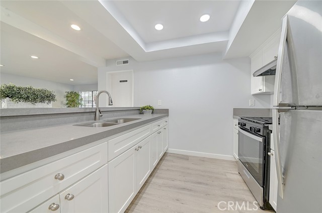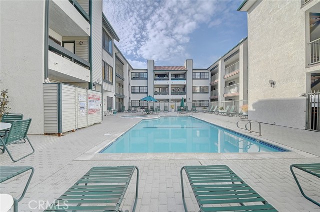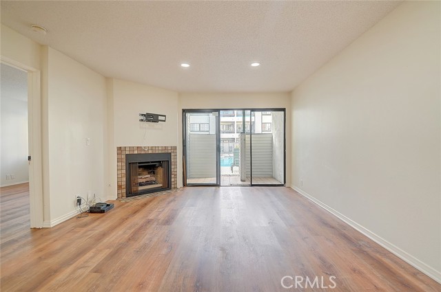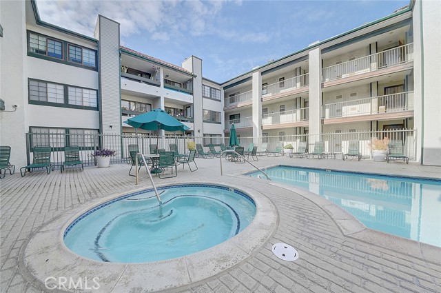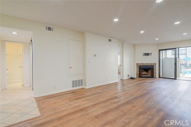 Welcome to a beautifully updated first-floor corner unit in the gated Hillbrook community—clean, modern, and move-in ready. This spacious condo features direct private access to the pool and spa, fresh interior paint, new luxury vinyl flooring throughout the living areas and bedrooms, and porcelain tile in the kitchen, entry, and baths. The kitchen shines with new granite countertops, a refinished cabinet system with new hardware, a stainless-steel sink and faucet, breakfast bar, and included gas range. The living room offers a cozy gas fireplace and opens to a private tiled patio with a storage room and a direct gate to the pool area. The oversized primary suite includes a walk-in closet and an updated vanity, while the second bedroom has large, mirrored closets and easy access to a refreshed bathroom with new fixtures. Additional upgrades include in-unit laundry hookups, a professionally cleaned dryer vent, central A/C and heat, and a brand-new, permitted Goodman 2.5-ton HVAC system that runs whisper-quiet. The unit also comes with its own private tandem two-car garage with built-in storage and convenient access to street parking outside the complex entrances.