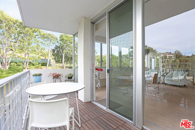 Discover this exquisite 2 bedroom, 2 bathroom condominium at the gated Edgewater Towers perched hillside just 100-yards from the Pacific Ocean. This unit's minimalist design is polished by modern architectural finishes that complement its mid-century roots. Picture windows span opposing walls for natural light and ocean cross breezes to flow, treetop views, and glimpses of the ocean. An open floor plan allows for effortless movement and features hardwood floors throughout, a white marble slab fireplace with black slate hearth in the living room, and a sleek, modern kitchen anchoring the entire space. Rich wood lower cabinets are balanced by the white high gloss uppers, stainless steel appliances, and floor to ceiling quartz countertops and backsplash. The primary bedroom has built-in shelving, walk-in closet, and ensuite bath with slate flooring and glass enclosed double shower and soaking tub. The second bedroom with ensuite bathroom can easily be used as den or office. Sip coffee on your private balcony, or enjoy the Edgewater Towers amenities such as basketball and tennis courts, fitness center, heated pool and spa, and 24-hour security. Close to hiking trails, shopping, Will Rogers State Beach, and a quick drive down PCH to Santa Monica or up to Malibu.