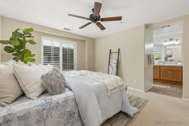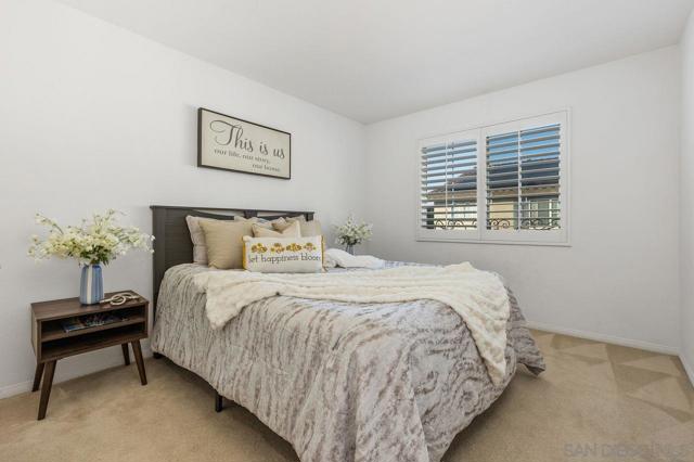 Welcome to this beautifully updated 3 bedroom, 2.5 bathroom townhome in the heart of 4S Ranch. With 1,428 square feet of comfortable living space, this home features new luxury flooring downstairs, granite kitchen counters, and newer stainless steel appliances including a refrigerator and dishwasher. Plantation shutters throughout add a classic, upgraded touch. The layout offers a bright and functional main level, while all three bedrooms plus a loft are located upstairs, including a light filled primary suite with its own bathroom and walk-in closet. An attached two car garage with an additional storage closet and full sized laundry room upstairs add everyday convenience. The home includes a private front patio that provides a comfortable outdoor space for relaxing or small gatherings. The Ravenna community also offers a pool, spa, and BBQ area for residents to enjoy. 4S Ranch is known for its top rated Poway Unified schools and desirable neighborhoods. Nearby shopping options include 4S Commons with Ralphs, Jimbos, World Market, restaurants, coffee shops, fitness centers, and a range of services. Del Sur Town Center with Target and additional dining choices is also close by. Parks, playgrounds, and scenic walking trails are available throughout the community, offering accessible outdoor recreation. A comfortable and well located home with easy access to schools, shopping, parks, and everyday conveniences. This is a must see!