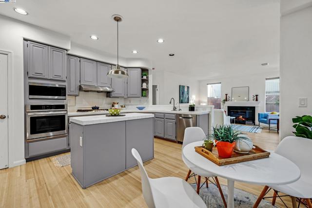 Former Largest Model Home in the most desirable Marina Vista community! Seldom available Gorgeous contemporary & newer construction! Open, light & bright beauty features 2,889 sq/ft, 5bedroom, 4 Full bath. It is a beauty nestled in the most desirable Marina Vista community. Well-Situated premium lot with a dedicated driveway & attached three-car garage. Well-Maintained upgrades and premiums include Gorgeous floors in the first floor, Open kitchen/family room combo features tile counter top, Stainless steel appliances and fireplace, Dual pane windows and boast lots of natural light. One master suite/office combo with full bath downstairs good for elderly and guests overnight. Two Large spacious master suite upstairs w/ huge walk-in closet, All good sized bedrms, Central Heat/AC Unit, Recessed Lighting throughout, Convenient inside laundry downstairs, Low maintenance fenced backyard w/ fruit trees and Jacuzzi! Low HOA includes community landscaping and a playground right across the street. Conveniently close proximity and minutes to Downtown, shopping centers and outlet, BART station and freeways.