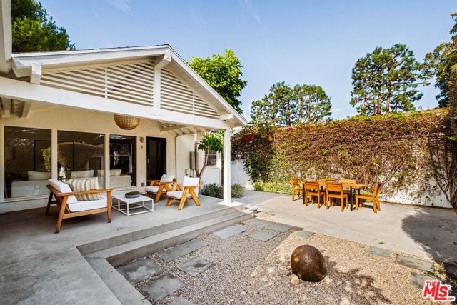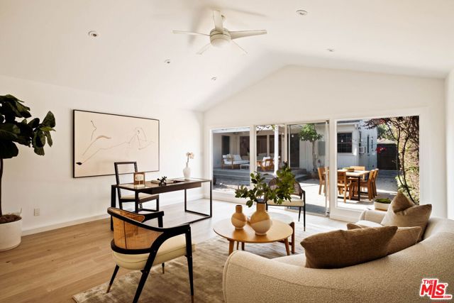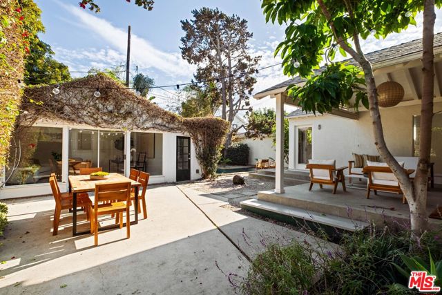 Tucked away on a quiet Venice cul-de-sac, 1016 Indiana Court feels like an easy escape you get to come home to. Light pours through three oversized picture windows, filling the living room with backyard views and showing off the warmth of the freshly refinished hardwood floors. Updated lighting gives the interiors an elevated yet relaxed energy. The recently renovated kitchen is designed for both cooking and gathering, with upgraded flooring, new counters, generous cabinet and pantry storage, and an effortless connection to the dining area and outdoors. The airy primary suite features vaulted ceilings and direct access to the yard, with two additional bedrooms offering flexibility for work, guests, or family. Both the front and back yards have been refreshed with new landscaping, creating a relaxed outdoor setting with water features in each space. The L-shaped pool with a Baja shelf is designed for sun lounging and easy afternoons in the water, and the covered patio is a natural gathering place for dinners, casual get togethers, and unhurried evenings outside.A detached flex space with new flooring adds versatility for an office, gym, creative studio, or guest overflow. Close to the beach, Abbot Kinney, and Rose Avenue, it sits in the heart of what makes Venice magnetic, with the rare advantage of having a calm space to return to.