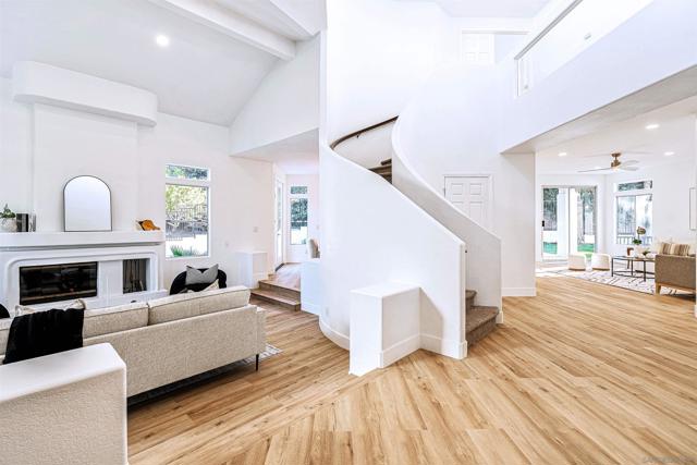Welcome to 4943 Marin Drive, a beautifully renovated residence in the highly sought-after gated community of Southridge Estates in Oceanside. This expansive 5-bedroom, 3.5-bath home offers over 3,200 sq. ft. of elegant living space designed for comfort and style. The bright, open floor plan features soaring ceilings, a cozy fireplace, and modern finishes throughout, while recent renovations bring a fresh, move-in-ready feel. The chef’s kitchen seamlessly connects to spacious living and dining areas, perfect for gatherings or entertaining. Retreat to the primary suite with its spa-like bathroom and generous walk-in closet, or enjoy the flexibility of additional bedrooms ideal for family, guests, or a home office. Step outside to your private backyard oasis, complete with sparkling pool, relaxing spa, and peaceful park views. Owned Energy-efficient solar ensures sustainable living and reduced utility costs. With a generous 0.39-acre lot, attached 3-car garage, and resort-style amenities within a secure gated neighborhood, this home offers the perfect blend of luxury, comfort, and convenience.
