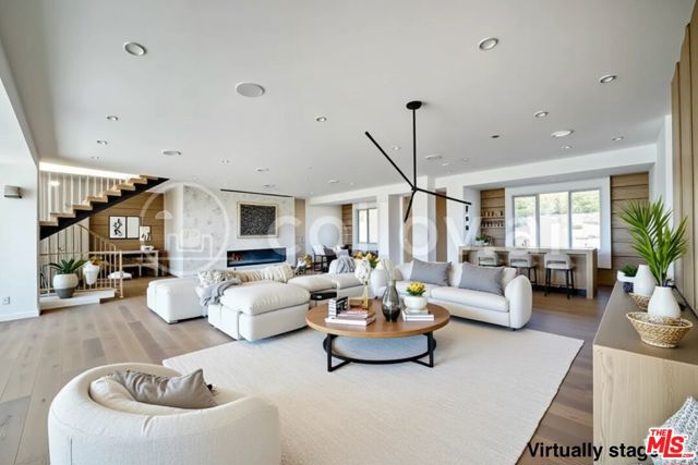A striking architectural achievement where expansive living meets coastal tranquility. This newly remodeled from top to bottom, three-story residence redefines modern luxury with 5bedrooms (which can be converted into 7) and 8 bathrooms and over 1,200 square feet of balconies and covered loggias designed to capture the Pacific breeze and sweeping ocean vistas. Floor-to-ceiling glass doors throughout the home dissolve the boundaries between interior and exterior, inviting natural light to dance across hardwood floors and illuminate the home's open, flowing floor plan. The heart of the home unfolds on the main level, where a generous living room features an intimate reading nook nestled beside a fireplace- ideal for quiet mornings. The expansive family room flows effortlessly from the kitchen, creating an intuitive space for daily living and grand-scale entertaining alike. Two large suites can be converted into three, plus an office if desired. Ascend to the upper level, where each ensuite bedroom is a private sanctuary with direct access to a sprawling ocean-view patio with its own fireplace. His and hers primary bathrooms each with ocean view and walk-in closets. Witness the sun melt into the Pacific- all from the comfort of your own retreat. The ground level unveils an entertainer's dream: a sophisticated screening area opens directly to the resort-caliber backyard, where a sparkling pool, spa, and expansive entertaining patio await. The detached pool cabana- complete with bathroom-offers flexible space as a seventh bedroom, guest suite, gym, or creative studio. The grounds are equally impressive: a substantial flat yard with generous grass areas provides endless possibilities for children and pets to explore, while lush landscaping provides serenity. Three car garage and on-site parking and room for kids to skateboard and bike around. This is more than a home- it's a lifestyle. Moments from Palisades Village, world-class beaches, and the vibrant dining and culture of the Westside, this residence offers the rare combination of serene privacy and effortless access to coastal California's finest offerings. *The 357 square foot pool cabana not included in total square feet.*