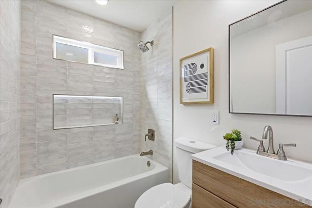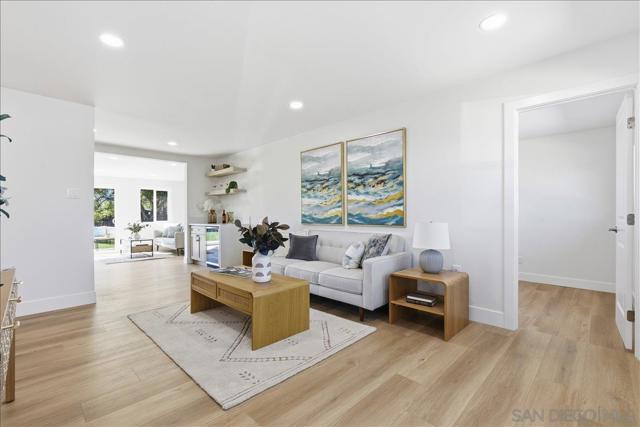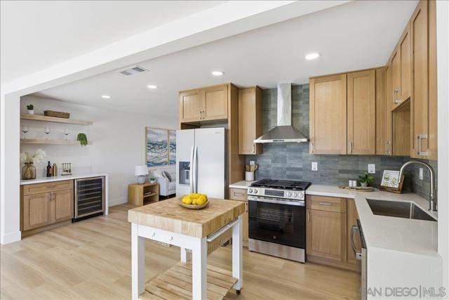 Welcome to this stunning single-story 4 bed, 2 bath home in the highly sought-after Bay Ho neighborhood…just minutes from La Jolla, Pacific Beach, and Mission Bay. The open, light-filled floor plan showcases a modern kitchen with light oak cabinetry, quartz countertops, and a chic green tile backsplash. A built-in bar area with floating shelves and a beverage cooler creates the perfect setting for entertaining. The spacious primary suite features a large walk-in closet and a beautifully appointed bathroom with a dual vanity and oversized shower with dual shower heads. Recent upgrades include a new central HVAC system, new windows for year-round comfort and energy efficiency, and all-new plumbing. The expansive backyard offers endless potential for outdoor living, gardening, or future expansion…perfect for enjoying San Diego’s indoor-outdoor lifestyle.