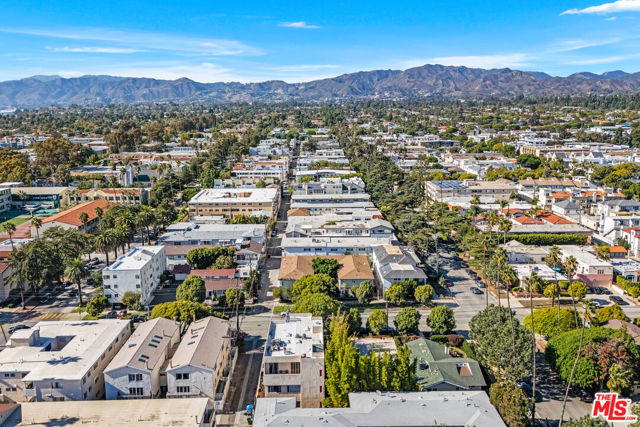 This single-level contemporary unit in a prime area North of Wilshire features two bedrooms and two bathrooms. It boasts high ceilings, a wood-burning fireplace, and engineered hardwood flooring throughout. The living room features a wet bar and a balcony overlooking California Avenue. The bright kitchen offers a breakfast area, an in-unit washer-dryer, and a pantry for additional storage. The primary suite features a balcony, large windows, a walk-in closet, and a private bathroom. The building consists of only five units, with two units per floor. Parking is conveniently side-by-side, and extra storage is available. This property is ideally situated near a variety of shops and restaurants along Wilshire, and is just a short stroll from Reed Park and the Third Street Promenade.