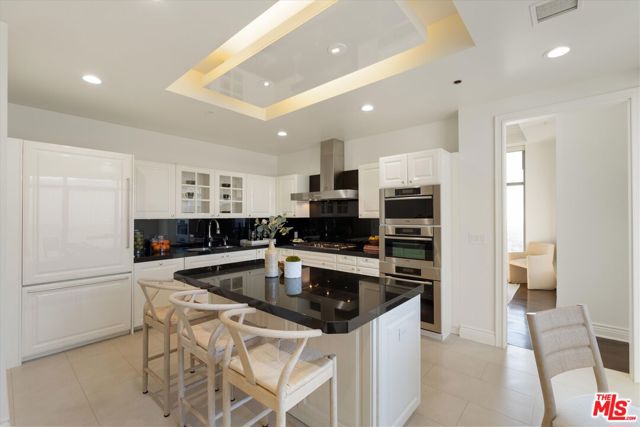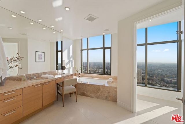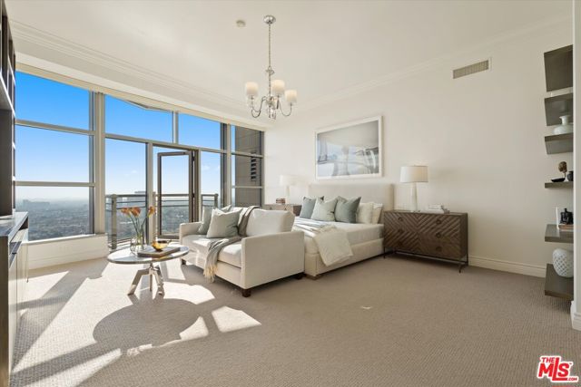 Unit 1904 at The Carlyle Residences is a coveted, 3,535 sq ft residence PLUS an additional 500+ sq ft housekeeping unit on the second floor and a valuable third parking space, making the total combined living space just over **4,000 square feet**. This additional, separate space features a convenient kitchenette and a full bathroom, perfect for staff quarters, a secondary office, or an additional guest room. The 19th floor residence offers 3 bedrooms / 3.5 bathrooms, and two balconies. The home provides unrivaled south-west exposure, showcasing cinematic views of the Pacific Ocean and the Los Angeles skyline; it also provides north facing views with a full display of The Getty and mountains. An exclusive, direct-access elevator opens into your private foyer. The interiors exhibit dramatic 11 ft ceiling height, hardwood floors, a fireplace, and a professional chef's kitchen with premium Miele appliances. The serene primary retreat includes a spa-like, marble-clad primary bathroom, a dedicated private office, and an extra large closet. Residents enjoy 5-star white-glove service (24-hour Valet, Doorman, Concierge) and world-class amenities including a heated pool, designer fitness center, and private wine storage.