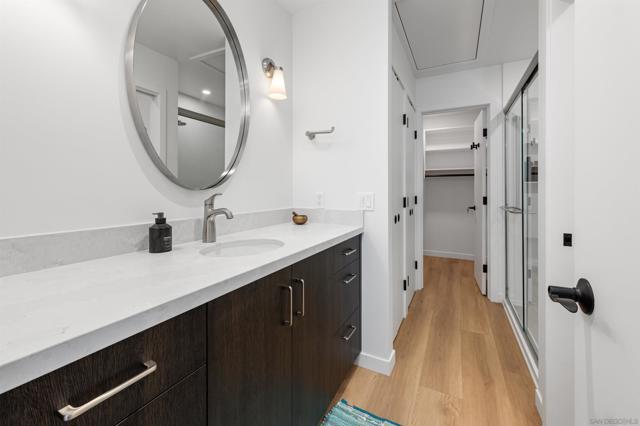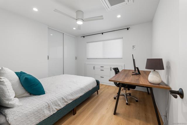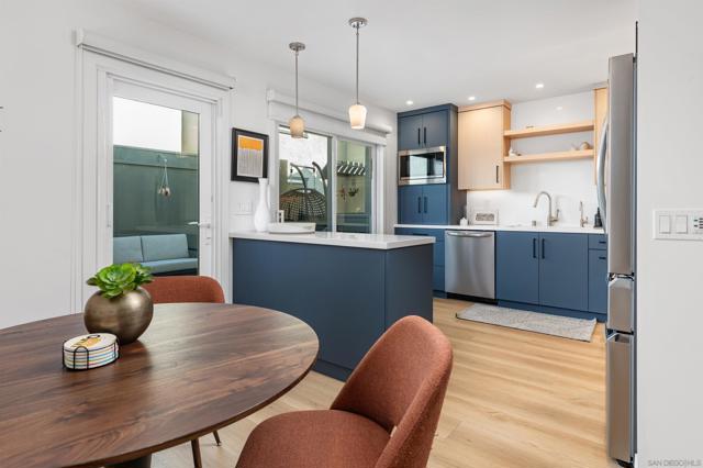 Seller financing available at 4.95% - inquire for details. Nestled in a serene canyon setting, this stunning townhome was meticulously remodeled over 12 months from top to bottom. The gorgeous kitchen has two-toned cabinetry, quartz counter-tops, induction range, reverse osmosis water filtration, and stainless steel appliances. Each bathroom is modern with thoughtful touches such as a heater built into the primary bathroom vanity. The home feels bright and open with tons of natural light from the new Milgard windows assisted by the new paint w/ smooth skim coat finish and light luxury vinyl plank flooring. The second bedroom has custom built in drawers for extra storage. The home also boasts a new a/c mini-split system throughout with recessed cassette style in the bedrooms and new lighting throughout, and a front patio and back deck. The two-car attached garage features EV charging, new water-heater with recirculating pump (for on demand hot water), stacked washer/dryer, stainless steel sink, and additional storage/coat closet right outside the garage. The home can be sold furnished. Within the complex there is a pool, tennis and pickleball courts, volleyball court, clubhouse, community garden, and guest parking all surrounded by Eucalyptus trees on 5 acres of land. This quiet, tucked away location is still close to freeways, shops, restaurants, and Mission Bay. The complex is also VA & FHA approved as well.