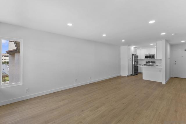 Fully remodeled 1 bed, 1 full bathroom and an additional powder room, with brand new appliances and a highly private top-floor location! Step into a modern, move-in ready home featuring an open layout, luxury vinyl plank flooring, recessed lighting, and fresh paint throughout. The upgraded kitchen includes brand new quartz countertops, shaker-style cabinets, and all-new stainless steel appliances—including a new refrigerator, dishwasher, electric range, and built-in microwave. The home offers a rare setup with three separate sink areas, a dedicated makeup vanity, and a beautifully updated shower. Enjoy indoor-outdoor living with a private balcony overlooking the pool and scenic mountain views. Located in a quiet, well-maintained community within walking distance to Fashion Valley Mall and minutes to Mission Bay, USD, downtown, and major freeways. Positioned next to the transformative Riverwalk development, this home offers exceptional convenience, impressive future upside, and incredible walkability—a standout opportunity for anyone seeking comfort, location, and long-term value in Mission Valley.