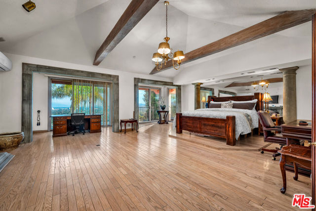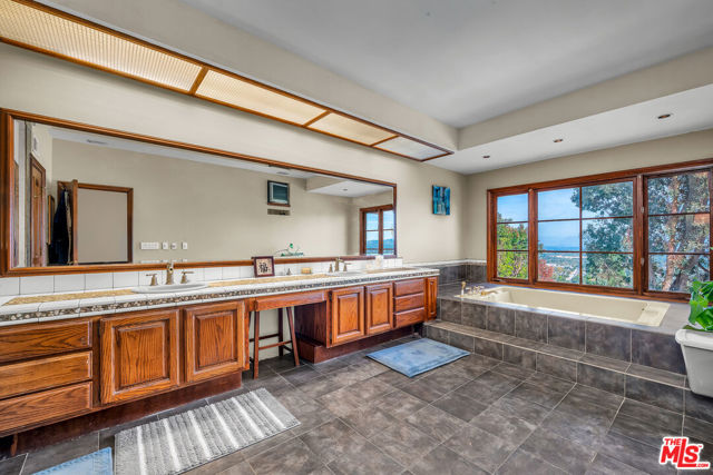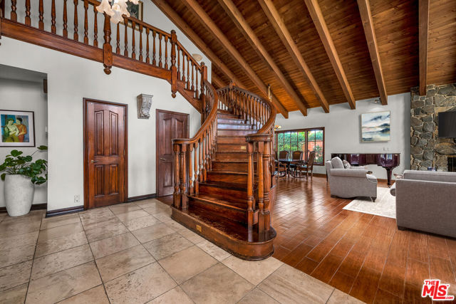 Located at the top of Valley Circle Estates, this impressive 5-bedroom (4 upstairs), 4-bath plus powder room home offers over 5,000 sq. ft. of living space on an almost 14,000 sq. ft. mostly flat lot, with sweeping views across the San Fernando Valley and surrounding mountains. The community's small HOA provides roving security and pest control. Inside, you'll find high ceilings, oversized rooms, and a center-island kitchen with a breakfast area that opens to the family/game room with access to the outdoor spaces. Additional highlights include an oversized hotel-style primary suite and a 3-car garage. The expansive entertainer's backyard features a pool with waterfall and spa, a large grassy lawn, an oversize covered patio and a gazebo ideal for relaxing and taking in the view or hosting large gatherings. This is A standout opportunity to reimagine a grand property in a premier location, within the Lockhurst Elementary, Hale Charter Middle School, and El Camino Real Charter High School district, and just blocks from the Las Virgenes Canyon Open Space Preserve and Victory Trailhead.