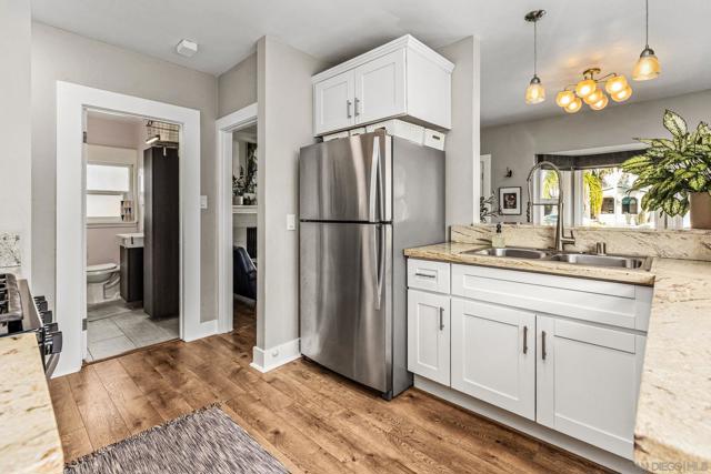 Step into a beautifully updated, turnkey home where modern finishes and thoughtful design shine throughout. The main home offers an updated kitchen with granite countertops, white shaker cabinets, and stainless steel appliances, two well-sized bedrooms and a stylish bathroom. The garage conversion enhances the layout with an optional room, featuring its own well-appointed full bath and convenient laundry. Perfect for an office, visiting guest quarters, or additional storage. A quaint, curated backyard adds the perfect space for entertaining to this effortlessly elegant residence. The private driveway to the left of the home allows for parking. Electrical and plumbing have been updated and ready for your EV charger to be installed. Enjoy a walkable lifestyle with shops, restaurants, and entertainment at your fingertips and easy freeway access as a gateway to the rest of the city. Hurry, this one will go fast!