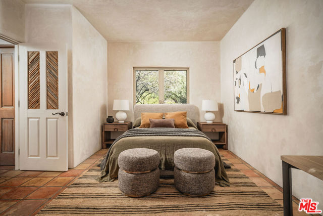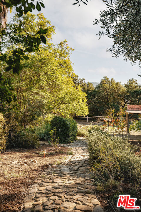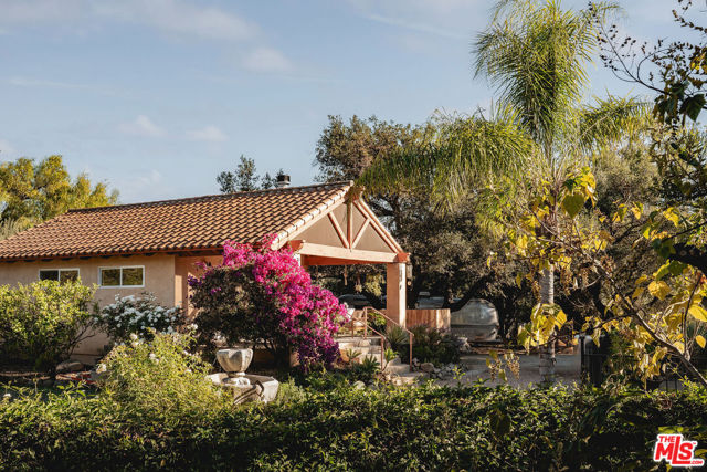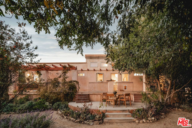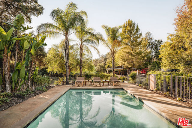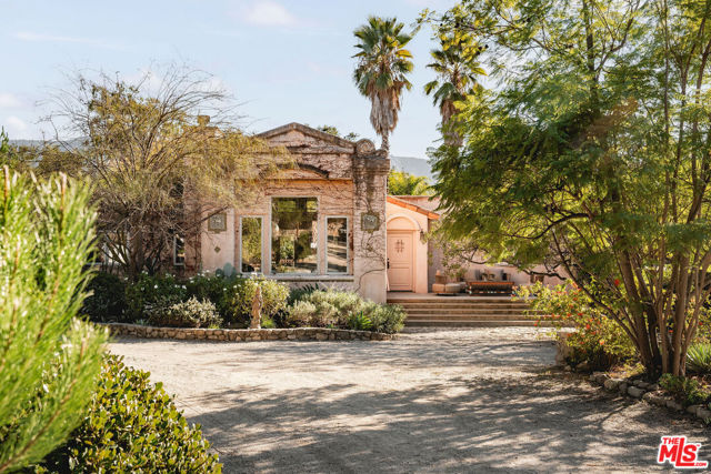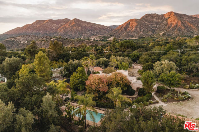 Located in Ojai's coveted East End, this Marc Whitman-designed sanctuary unfolds across nearly 2 acres of flat, usable land. Framed by wide-open mountain vistas and Ojai's iconic pink moment, the property lives as a true compound, offering a collection of thoughtfully placed structures that support both connection and privacy. The 2-bed, 2-bath main residence carries a warm, subtly Santa Fe-inspired design, with exposed beams, tall windows, and natural light that moves through an open interior layout. Nearby, a 1-bed, 1-bath pool house anchors the resort-style pool terrace, creating an easy setting for gatherings, wellness, or weekend guests. A separate 1-bed, 1-bath casita sits just beyond, ideal as a private guest suite, creative studio, home office, or multi-generational space. The grounds are generous and thoughtfully arranged, with mature fruit trees, raised garden beds, existing infrastructure for animals, and ample room for equestrian use or a small homestead. The result is a rare East End offering: versatile, quietly private, and set up to support a range of living styles, from everyday simplicity to multi-generational living.