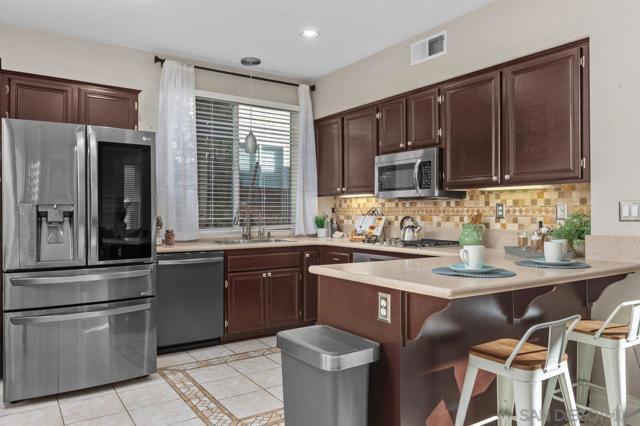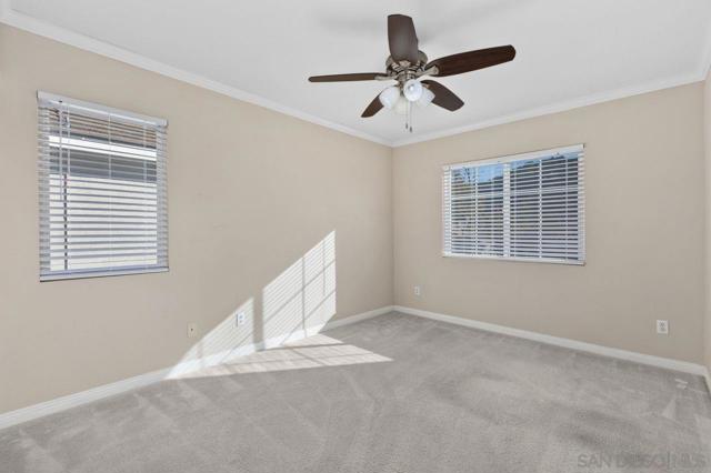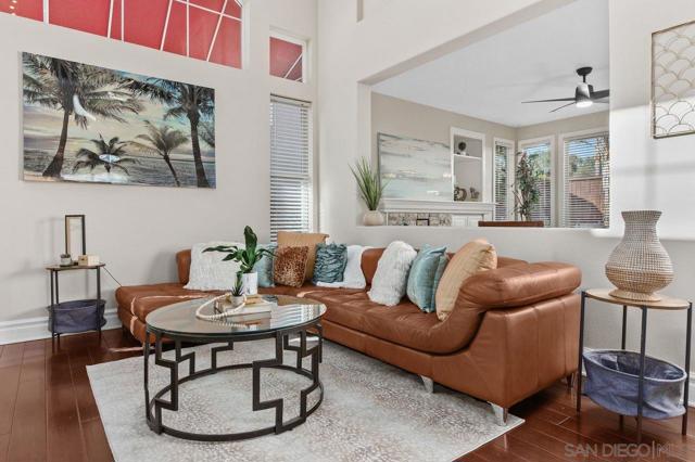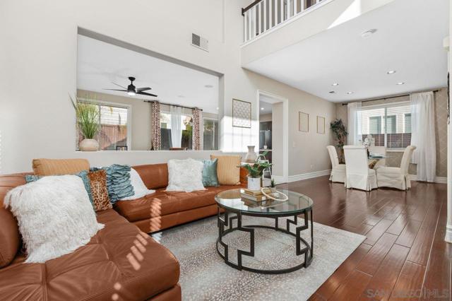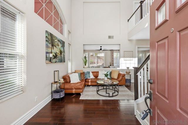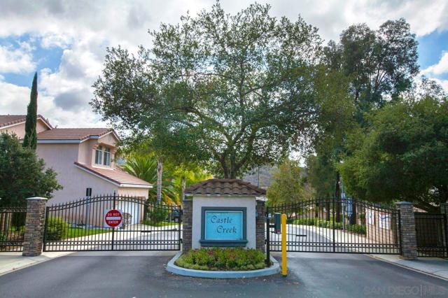 Welcome to The Treasures at Castle Creek in North Escondido. This inviting 2,413 sq. ft. home features 3 bedrooms, 2.5 baths, plus an optional room that works perfectly as an office, den, or potential 4th bedroom. The open floor plan creates an easy flow between the living, dining, and family areas, and high ceilings with abundant natural light enhance the bright, spacious feel throughout. The gourmet kitchen offers stainless steel appliances and a comfortable breakfast nook, while the separate dining room provides space for more formal gatherings. Ceiling fans in the bedrooms and family room, along with a whole-house fan, support year-round comfort. Owned solar currently supplies all of the owner’s electrical needs—an exceptional benefit for efficiency and long-term savings. Upstairs, the private primary suite features its own balcony, dual vanities, a walk-in closet, and a separate tub and shower. Two additional bedrooms and the optional room complete the upper level, providing flexibility for work, guests, or multi-use living. Located in a private, gated community offering a pool, tennis courts, and playground, this home also features a low-maintenance backyard ideal for relaxing outdoors. The cul-de-sac setting provides a quiet, peaceful atmosphere, and with convenient access to the 15 Freeway, commuting is simple. A wonderful blend of comfort, function, and community amenities in a highly desirable North Escondido location.