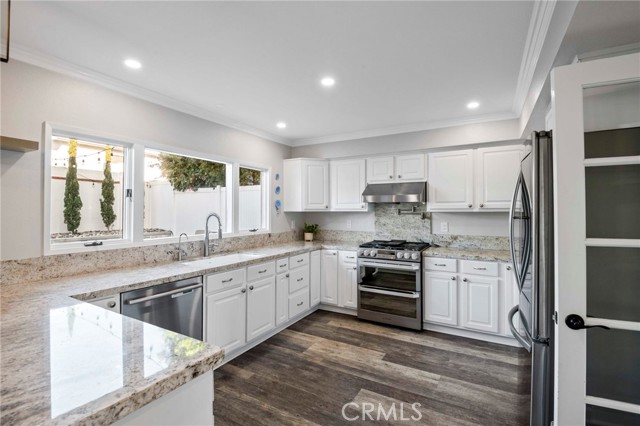 Opportunity knocks to own a beautifully remodeled pool home in the heart of Dana Point. Set behind a private, wraparound fenced front yard, ideal for both entertaining & everyday enjoyment. The resort-style backyard showcases a saltwater pool, 12-jet spa with booster jet option for deep massage, cascading waterfalls, and a fire bowl, creating a true outdoor retreat. Upon entry, you are welcomed by soaring ceilings, LVP flooring throughout, recessed lighting, stylish new light fixtures, and a sweeping staircase. The large, open floor plan is filled with abundant natural light from numerous windows throughout the home. A bedroom and full bathroom on the main level provide excellent flexibility for guests or multigenerational living. The spacious kitchen overlooks the backyard & opens seamlessly to the family room with a recently updated fireplace. Kitchen highlights include neutral granite countertops, pot-filler with filtered water and LG Signature Dual Fuel Oven make preparing culinary delights a breeze. Soft-closing drawers and cabinetry, and a newly added walk-in pantry give you the perfect space to store your kitchen gadgets. Extensive upgrade list includes a newer roof, new furnace, new air conditioning system with all new ductwork throughout the house, upgraded electrical panel, vinyl fencing, new large sliding glass doors providing a perfect view of the beautiful pool, quiet cool attic fan, newer water heater, and new rain gutters. The updated garage includes epoxy floor, overhead storage, built in cabinets, sink, and new garage door opener with MyQ app controlled access. Enjoy cool ocean breezes, just 1.5 miles from the beach & a short 5 minute drive to Dana Point Harbor currently undergoing a $600 million dollar revitalization with all new restaurants and shops. Idyllic Sea Canyon Park is around the corner, which includes beautifully manicured open space, large mature trees, popular playground, and a dog park! Just steps away from the complimentary Dana Point Trolley, running Memorial Day through Labor Day and during special events, making it easy to enjoy the area without worrying about parking. This exceptional home blends modern upgrades, flexible living spaces, and a highly desirable coastal lifestyle.