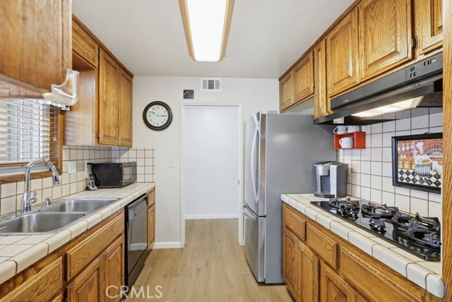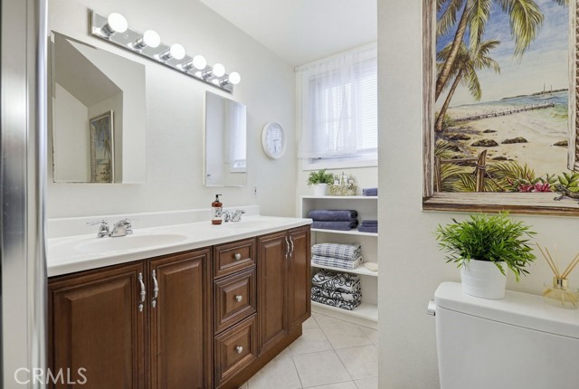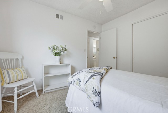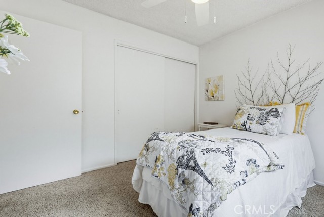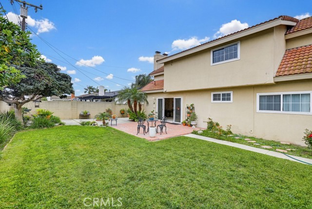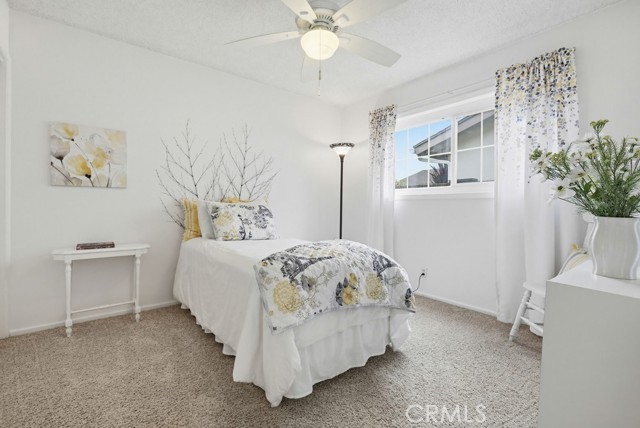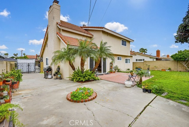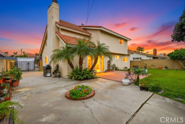 Welcome to West Garden Grove and the spacious Plan 8 5-bedroom 2-bath home you need for that growing family. Sharp curb appeal with Black wrought iron accents and black shutters, and the front door adds that look of elegance to the exterior. Double gates offer RV side access or additional parking on the oversized driveway. The home has a Concrete tile roof, white double-paned windows, and a neutral color scheme, making this a move-right-in home. Flooring is a mixture of carpeting and wood-look vinyl. The living room boasts a wood-burning fireplace and views of the private, lushly landscaped backyard and Patio. There are 2 downstairs bedrooms and a full bath. The 2nd level features 3 bedrooms and 3/4 bathroom, including the spacious primary bedroom with 2nd wood-burning fireplace and a large walk-in closet. All this home needs is a family to fill it up and make memories.