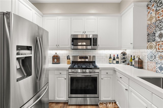 Experience refined living in this beautifully upgraded three-bedroom, 2.5-bath townhome ideally located in the heart of Ladera Ranch. A charming front porch sets the tone as you step into an open-concept floor plan filled with natural light, perfectly designed for both everyday living and entertaining. The chef’s kitchen features stainless steel appliances, quartz countertops, a designer backsplash, and a generous breakfast bar that flows seamlessly into the inviting family room—ideal for relaxed evenings or hosting guests. Upstairs, the spacious primary suite serves as a private retreat, featuring a stunningly upgraded bathroom with subway tile, a new walk-in shower, dual vanities, a walk-in closet, and an additional secondary closet. Enjoy indoor-outdoor living with direct access to a large private balcony through sliding glass doors. Two additional well-appointed bedrooms share a full hallway bathroom, while a dedicated upstairs laundry room adds exceptional convenience. Additional highlights include an attached two-car garage with direct access and a home that has been meticulously maintained, reflecting true pride of ownership. Major systems, including the HVAC, furnace, and water heater, have been serviced annually and are in excellent condition. Ideally situated near Founders Park, residents enjoy access to Ladera Ranch’s premier amenities, including resort-style pools, pickleball and tennis courts, playgrounds, dog parks, and a vibrant Sunday farmers market. Just minutes from shopping, dining, and everyday conveniences, this home offers the perfect blend of luxury, comfort, and an unbeatable Southern California lifestyle.