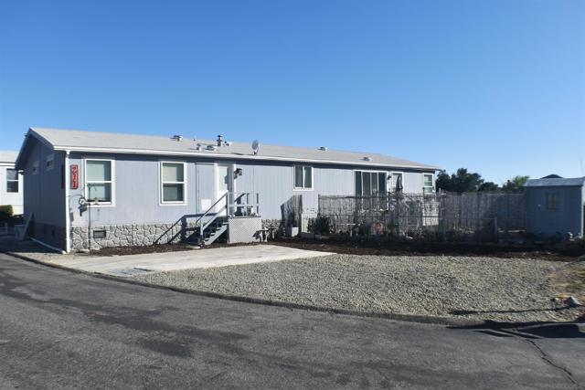 Live in a spectacular and remarkably peaceful setting! This home is nearly new, built in 2020 and situated on an oversized lot that you own in fee simple ownership! This home is also highly energy efficient due to the expense the owner incurred by including an expensive “6 inch wall” option. The property is located in the mountain Town of Warner Springs in San Diego County. This 3 bedroom, 2 bath manufactured home is located in Stone Ridge Estates which is a 55+ community across from Shadow Mountain Winery and situated along the North Mountain Wine Trail. This home is in amazing condition since it was recently built. It has a large side yard for gardening or a pet. There is also plenty of room for a garage and presently has open parking for up to four vehicles. Enjoy the amazing views of the Palomar Mountains, dramatic sunsets and star filled nights. The HOA amenities include a swimming pool and spa along with fishing in a couple of the ponds located on-site. There are pool tables, a television and a fireplace along with a bar and fully furnished kitchen for private events! There are areas to hike or ride your mountain bike surrounding the area as well. There is RV parking typically available for a nominal fee as well. The HOA fee includes wonderful deep well water, trash and water treatment. You will definitely want to take a closer look at this property if you're considering relocating to this area!