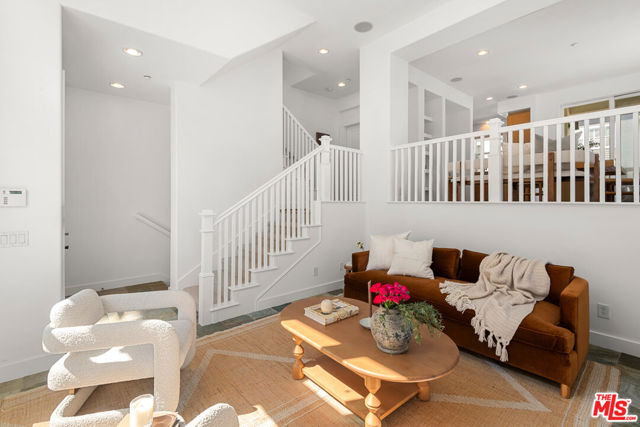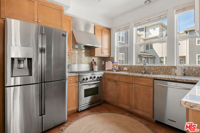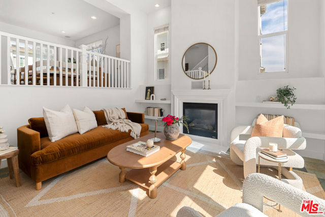 Light & bright south-facing corner townhome with private entry and private 2-car garage in desirable Tapestry II. First-floor living room features high ceilings, slate floors, fireplace, and abundant natural light. Open-concept kitchen, family, and dining area with hardwood floors, granite countertops, and stainless steel appliances, opening to a private balcony. Upstairs offers vaulted-ceiling primary suite and second bedroom filled with natural light. Primary bath with dual sinks and walk-in shower. Close to shops and restaurants. All Playa Vista amenities included Cable & Internet, Resort & Centerpointe Clubs.