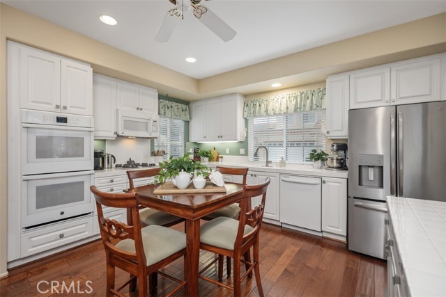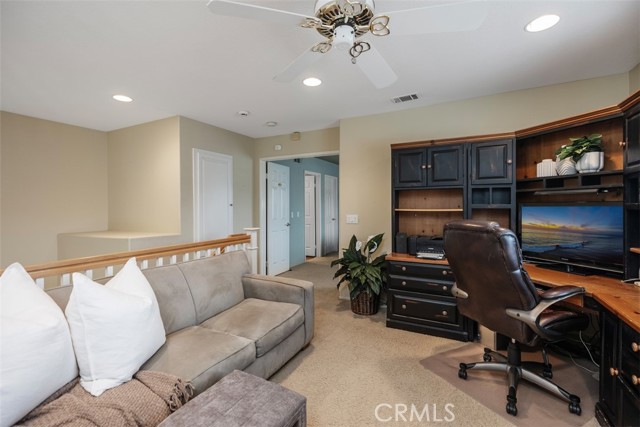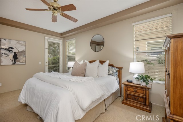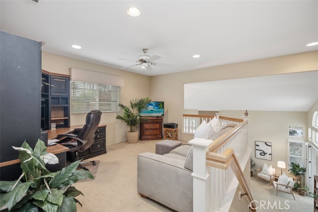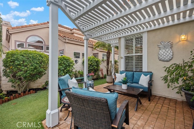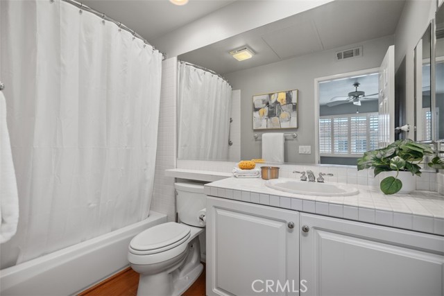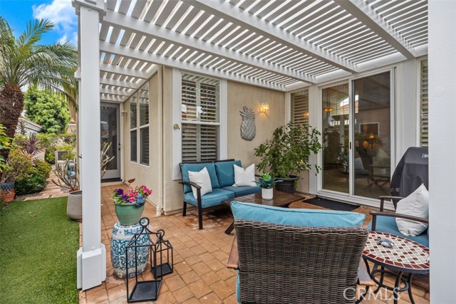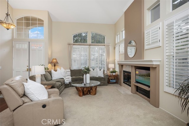 Welcome to this highly desirable home nestled within the sought-after, guard-gated 55+ community of Palmia. This well-maintained residence offers two generously sized bedrooms, each with its own ensuite bathroom, along with flexible options for a potential third bedroom. The downstairs den with double-door entry, currently used as a dining room, can easily be converted into a third bedroom. Additionally, the downstairs powder room offers space to add a shower, creating a full bathroom. A second option for a third bedroom is the upstairs loft, providing versatility to suit your needs. The spacious primary suite features direct access to the backyard patio and a well-appointed ensuite bathroom with dual-sink vanity, walk-in shower, private water closet, and walk-in closet. Filled with natural light, the interior showcases soaring vaulted ceilings, a neutral color palette, plantation shutters, and an expansive great room anchored by a cozy fireplace. Designed for effortless entertaining, the open-concept kitchen features a microwave, dishwasher, new double ovens, pantry, broom closet, and a convenient interior laundry closet. The kitchen flows seamlessly into the family room, creating the highly sought-after great-room concept. The fully enclosed backyard offers a wraparound patio and lush greenery, perfect for relaxing or entertaining outdoors. Additional highlights include an attached two car garage with ample storage and updated PEX plumbing throughout the home. Residents of Palmia enjoy an exceptional array of amenities, including a clubhouse, recreation room, organized activities, swimming pool, jacuzzi, fitness center, 18-hole putting green, pickleball and tennis courts, bocce ball, shuffleboard, and library. The home also includes Lake Mission Viejo membership, offering boating, swimming, fishing, concerts, events, and more. Welcome home.