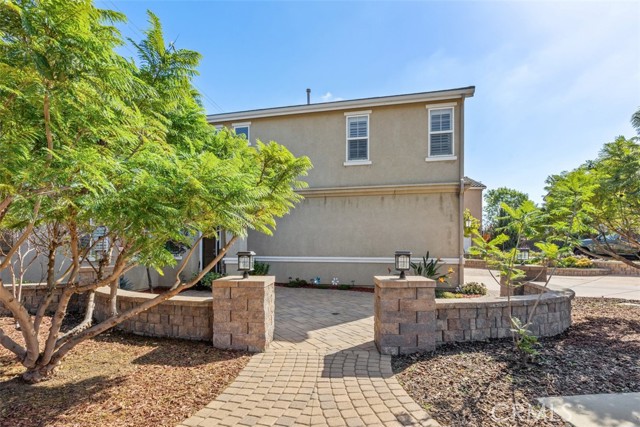 HERE IT IS! This beautiful Escondido home offers excellent curb appeal with well-maintained landscaping and was built in 2014. Featuring 4 bedrooms and 3 full bathrooms, the home provides approximately 2,309 sq. ft. of living space on a 6,518 sq. ft. lot. Upon entry, you’re welcomed into a spacious living room with a gas fireplace, rich laminate flooring, and window shutters. The living room, dining area, and kitchen connect seamlessly to create an open-concept great room ideal for both everyday living and entertaining. The kitchen is thoughtfully designed with granite countertops and backsplash, stainless steel appliances, a dual oven, and a gas five-burner cooktop. The living room offers direct access to the expansive backyard through a glass sliding door. The main level is complete with a full bathroom, a versatile flex space perfect for a home office, formal dining room, or potential guest bedroom, and a separate laundry area. Upstairs, the spacious primary suite features a large walk-in closet and an ensuite bathroom with dual sinks, a makeup vanity, ample cabinetry, a soaking tub, and a separate glass-enclosed shower. Three additional bedrooms and a third full bathroom are also located upstairs, along with a landing area featuring a built-in workstation and generous storage. The backyard is ideal for outdoor entertaining with professionally installed hardscaping and a gas fire pit. The 2-car garage includes custom built-in cabinetry for ample storage, and the extended driveway provides abundant parking. Enjoy all this home has to offer—and more—with NO HOA and NO Mello-Roos!