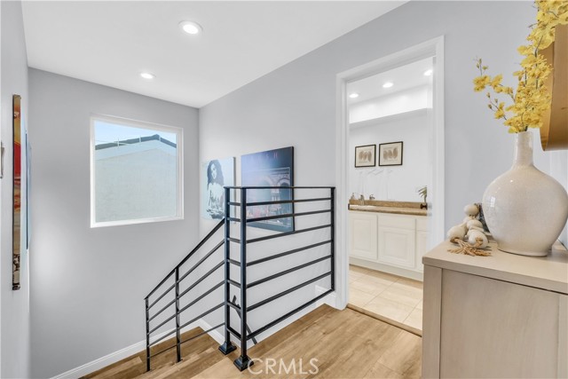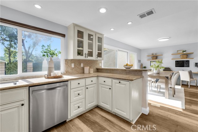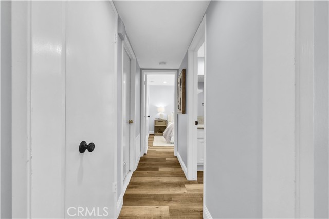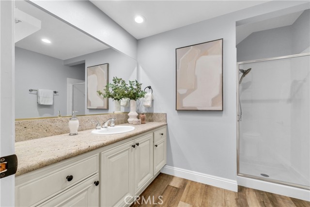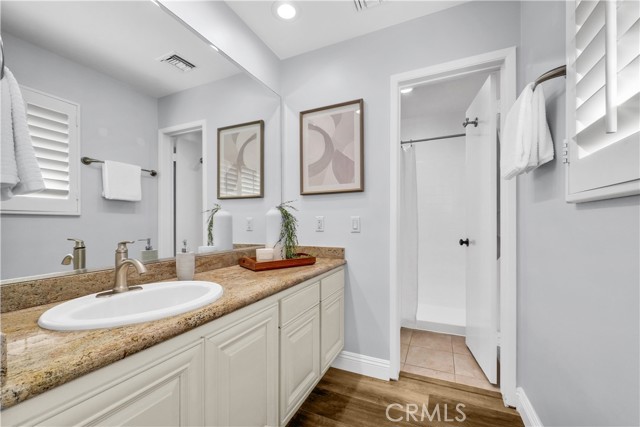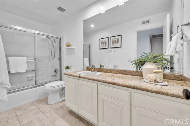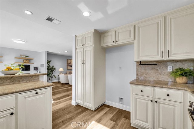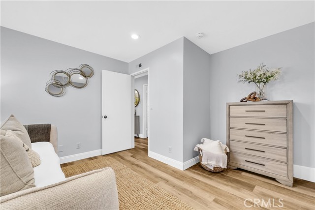 Located in one of the best locations within Westminster Village, this beautifully upgraded and impeccably maintained home backs to a large greenbelt, giving you the feel of your own private backyard. You are just a short walk to the community amenities, close enough for convenience while still far enough away to enjoy peace and quiet. Inside, you will find dual-pane windows, plantation shutters, and luxury vinyl plank flooring. The main level offers a built-in office area, complete with a custom solid maple desktop and custom drawers, perfect for working from home or staying organized. The desirable downstairs bedroom includes a dual-pane slider to the side patio and a bath with a walk-in shower, making it ideal for guests or multi-generational living. The kitchen is well-appointed with a reverse osmosis system, a new stainless steel oven with air fry and convection settings, a new dishwasher, and plenty of counterspace. Upstairs, the primary suite is a true retreat, featuring a spacious, light-filled setting with soaring vaulted ceilings, recessed lighting, a cozy fireplace with a seating area, a generous walk-in closet complete with a custom built-in closet system, and a private ensuite bath. The second upstairs bedroom connects to an expansive finished bonus room perfect for a playroom, extra office, yoga or exercise room, or additional storage. Enjoy an enclosed private patio ideal for BBQs and entertaining, plus an oversized attached two-car garage with an epoxy floor, finished drywall, laundry hookups, ample storage, and a Stage 2 EV charger. The garage also includes a Gladiator Gear Track hook system and additional storage options. Major behind-the-scenes upgrades include a full re-pipe with PEX, a whole-house water filtration and conditioning system with no salt required, a newer 50-gallon gas water heater, and recent electrical and lighting updates, making this home truly move-in-ready. Westminster Village features streams, walking paths, greenbelts, and playgrounds, along with resort-style amenities including four pools, tennis courts, a sauna, and a hot tub. The main pool is saltwater and heated year-round to approximately 82 degrees. The main clubhouse offers a large recreation room with a pool table, ping pong, a library, and video rentals. Low HOA fees and a convenient location near the 405 and 22 freeways make commuting easy, with top-rated schools, shopping, and the beach just a short drive away.