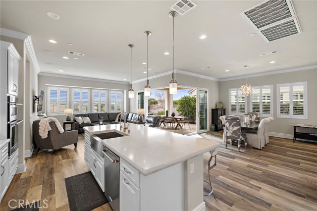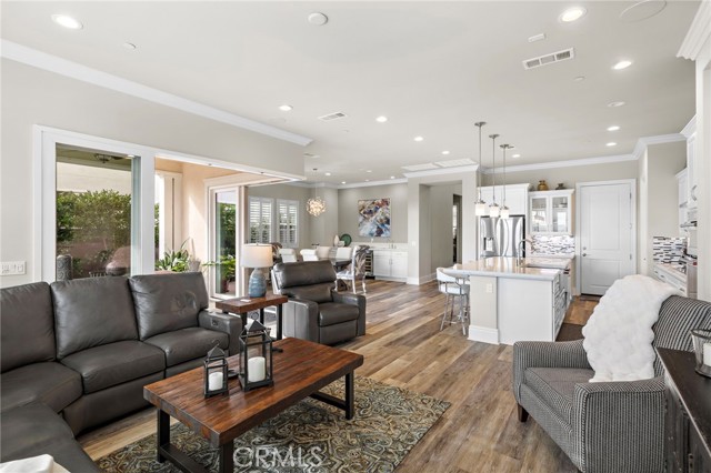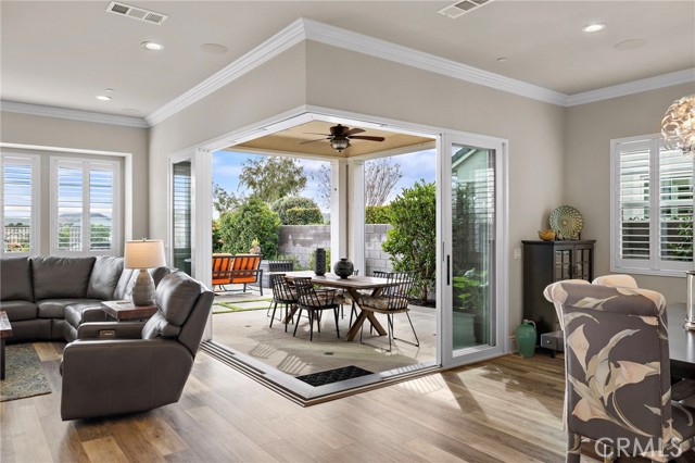 Elevated living meets effortless elegance in this exceptional Gavilan 55+ residence, where breathtaking views, an expansive premium lot, and a sophisticated indoor–outdoor lifestyle create a truly rare offering. With owned solar, designer upgrades, and thoughtful architectural details throughout, this home delivers the perfect blend of luxury and low-maintenance living. Beautifully upgraded and meticulously styled, this residence offers 2 bedrooms and 3.5 baths, including a convenient main-floor powder room for guests. Sunlight pours into the open-concept living spaces, highlighting modern finishes, elevated design, and a welcoming sense of flow. At the heart of the home, the sleek chef’s kitchen connects seamlessly to the living and dining areas. Double pocket doors disappear completely, expanding the entire space into a resort-style outdoor retreat—ideal for hosting gatherings or unwinding with panoramic views. The main-floor primary suite is a serene sanctuary with luxurious appointments, while the well-separated guest suite provides privacy and comfort. Upstairs, a spacious loft adds incredible versatility—featuring its own ensuite bath and an abundance of storage. It’s the perfect space for grandkids’ sleepovers, a dedicated home office, fitness area, or a bright and inspiring creative studio. Located within the prestigious Alma enclave of Rancho Mission Viejo, residents enjoy exclusive access to Gavilan’s renowned 55+ amenities, including resort-style pools, state-of-the-art fitness centers, social clubs, scenic trails, parks, and engaging community events—all framed by the natural beauty of the surrounding open space. With owned solar, luxurious enhancements, and flexible spaces designed for the way you live, this home offers elevated living at its finest. A rare and special opportunity you won’t want to miss.
