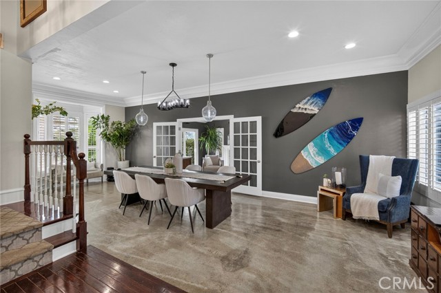 A Rare Gem Designed for Modern Family Living For those who appreciate distinctive architecture over conventional layouts, this thoughtfully designed 5-bedroom residence offers design flair and personality. Situated on a coveted single-loaded street with spectacular sunset views, this home features an exceptional flow that adapts seamlessly to family gatherings, remote work, entertaining, and multigenerational living. This home creates the quintessential Southern California lifestyle of indoor-outdoor living. Dual Primary Suites – Ultimate Flexibility The standout feature is its rare dual primary suite configuration—one upstairs and one downstairs—perfect for multigenerational living, guests, or a private work-from-home sanctuary. The downstairs primary includes an en-suite bathroom, walk-in closet, and kitchenette, offering complete independence and functionality. Versatile Spaces That Flow Discover multiple distinct gathering areas designed for different occasions and age groups—ideal for balancing remote work with family life. The main level features two living areas with stunning fireplaces, plus formal dining. Three of the four upstairs bedrooms boast custom-designed alcoves, adding unique character and extra square footage. The two rear bedrooms share a charming balcony overlooking the backyard and sunset views. Upstairs flooring is elegant, engineered hardwood. Outdoor Paradise The spacious backyard is an entertainer's dream, featuring raised patios, a putting green with multiple holes, and ample space for family games and gatherings. Mature landscaping includes palm trees, Birds of Paradise, plumeria trees, and established rose bushes creating your own private retreat. Premier Location & Lifestyle Laguna Niguel ranks among America's finest communities, boasting 34 parks and 81 miles of hiking trails. Nearby amenities include Lifetime Athletic, excellent schools, shopping (Costco, groceries), local dining, and easy freeway access (73 Toll Road and I-5). Crown Valley Community Park features a new community center, YMCA, regional park with lake, fishing, tennis, and pickleball courts. Minutes to Salt Creek Beach, the Ritz-Carlton, Waldorf Astoria, Dana Point Harbor, Doheny Beach, and Laguna Beach. No Mello-Roos. Low HOA. A special home. A great opportunity. Welcome home.