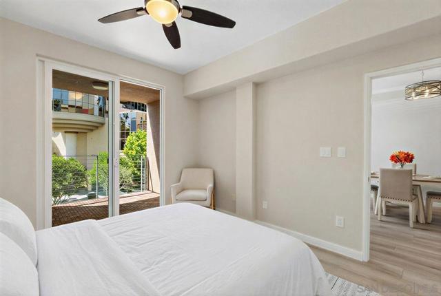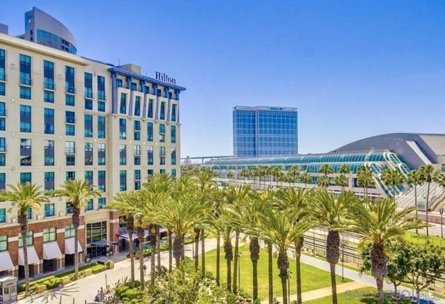 Discover urban tranquility and style in the heart of the Marina District. This beautifully updated 2-bedroom, 2-bath condo offers a thoughtfully designed open floor plan and resort-style amenities including a fitness center, landscaped courtyard, and meeting room, plus a rooftop deck with BBQ and lounge seating with impressive city views. Inside, the home has been tastefully upgraded with wide-plank flooring, stainless steel appliances, granite countertops, and an updated kitchen and primary bath. Oversized windows bring in abundant natural light, and the west-facing balcony offers a pleasant outlook. Additional upgrades include updated fans and fixtures, plus many more improvements throughout. Additional benefits include an in-unit washer/dryer, two assigned parking spaces in the secure parking garage, and some of the lowest HOA dues in the area—covering dedicated WiFi, water, and trash. Step outside and enjoy the best of downtown San Diego—Petco Park, the Convention Center, the Gaslamp Quarter, and the waterfront are all just minutes away—making this an ideal place to live, work, and play.
