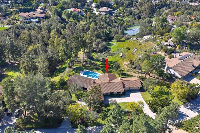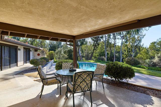 Nestled within the highly sought-after community of The Trails in Rancho Bernardo, this custom single-level residence offers approximately 2,800 square feet of living space on an expansive 1.1-acre lot. Built in 1977, the home presents a rare opportunity to enjoy classic architectural character with room to personalize and update to your vision. The functional floor plan includes four bedrooms and three bathrooms, highlighted by spacious living areas, vaulted ceilings in both the primary suite and family room, and a striking stone fireplace that anchors the main living space. The kitchen features stainless steel appliances and generous workspace, while the oversized primary suite offers a large bathroom with dual sinks, a soaking tub, and a separate shower. Designed for both relaxation and entertaining, the backyard showcases a pool and spa, covered patio area, and ample open space with privacy and potential. Additional features include a three-car garage and the convenience of single-level living throughout. Located within the acclaimed Poway Unified School District and just minutes from I-15, shopping, dining, and local amenities, this home combines space, location, and opportunity in one of Rancho Bernardo’s most desirable neighborhoods.
