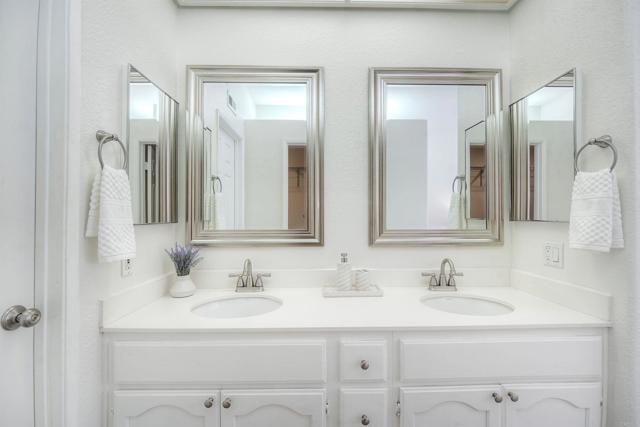 Nestled in a beautifully maintained gated community; welcome to Palmilla Del Oro. This home features a move-in-ready, ground-level end unit with a sunny kitchen, breakfast counter, with a gas stove and refrigerator. There is a patio just outside of the Dining Area for outdoor relaxation without leaving home. The spacious master suite has direct access to a second patio with views of trees adjacent to Mira Costa College. And two additional bedrooms add versatility for a home office or a guest room. This exceptional home truly shows like a model-inside and out. Ideally situated between Orange County and San Diego, this home has the perfect balance of tranquility and convenience; with easy access to I-5 and Highways 78 & 76. It is located just minutes from the best beaches in North County as well as scenic trails, dining and shopping.