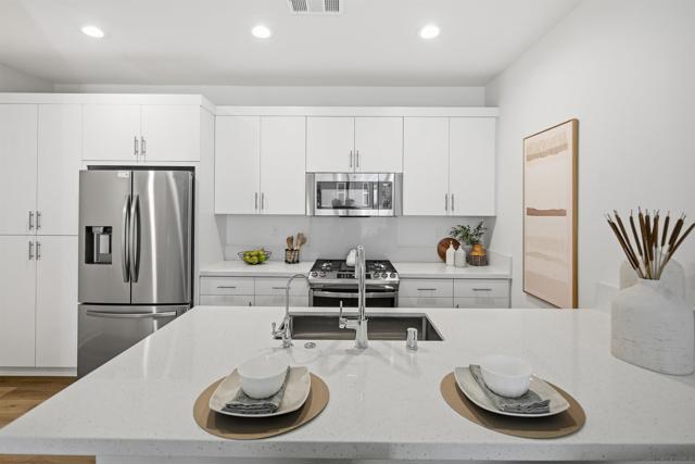 Modern Living At Marquee Welcome home to this stylish one bedroom plus loft, 1.5 bath residence in the highly desirable Marquee at Civita. Designed with modern living in mind, this light filled home features an open concept layout with luxury vinyl plank flooring throughout the main living level and brand new plush carpet on the stairs and upper floor for added comfort. The contemporary kitchen anchors the space with sleek cabinetry, stainless steel appliances, gas range, quartz countertops, and a spacious peninsula that flows seamlessly into the living area and out to your private patio, creating the perfect setup for entertaining or relaxing indoors and out. Upstairs, the primary suite offers a peaceful retreat complete with an ensuite bathroom, dual vanity, and generous walk in closet. The versatile loft provides endless possibilities and works beautifully as a home office, guest space, or creative studio. A convenient half bath on the main level adds functionality, while the attached oversized one car garage offers excellent storage and everyday ease. Located in one of San Diego’s most vibrant master planned communities, this thoughtfully designed home delivers modern comfort, flexible living space, and an unbeatable lifestyle. A rare opportunity to own a beautifully appointed residence in Civita. Civita in Mission Valley Marquee is a contemporary residential community located within Civita, Mission Valley’s vibrant and thoughtfully designed master planned neighborhood. Known for its walkable layout and lifestyle focused design, Civita offers residents everyday convenience with a mix of restaurants, boutique shops, a veterinary clinic, and LA Fitness, all just steps from home. One of the standout benefits of living at Marquee is its close proximity to The Row, Civita’s highly anticipated retail and dining destination, anchored by Jimbo’s Naturally. This will be a go to hub for organic groceries, dining, and neighborhood gathering, all just a very short walk away. Just beyond The Row sits the Civita Recreation Center, where residents enjoy resort style pools, spa, fitness center, BBQ areas, lounges, and community spaces designed for both relaxation and connection. At the heart of the neighborhood is Civita Park, an expansive green space featuring walking trails, gardens, amphitheaters, courts, and open lawns that host community events year round. Centrally located in Mission Valley, Civita offers easy access to beaches, downtown San Diego, Snapdragon Stadium, and major freeways, creating a lifestyle that balances urban convenience with outdoor living.