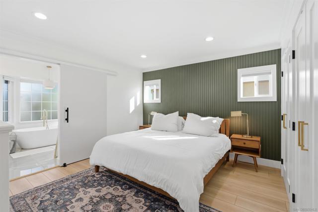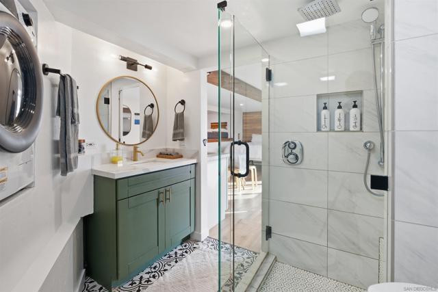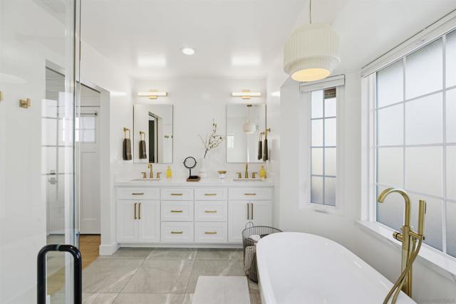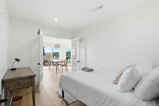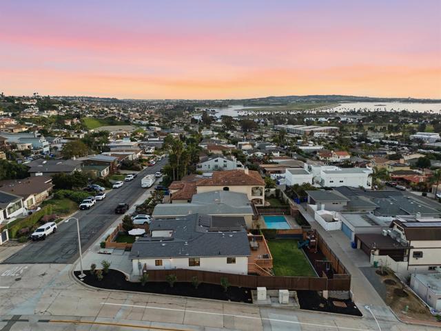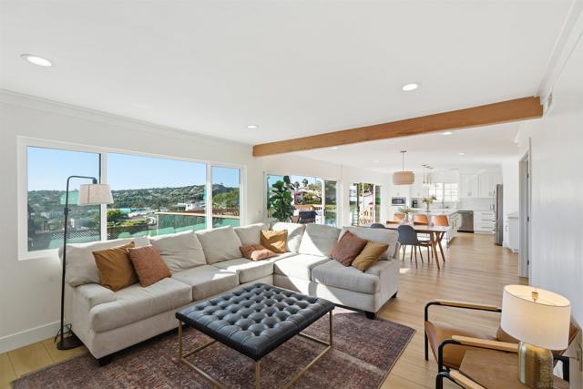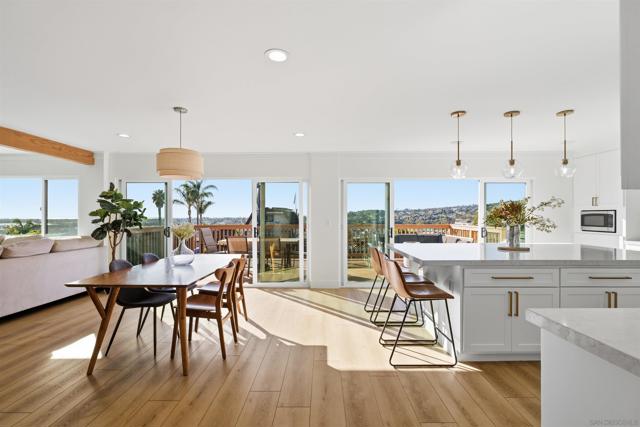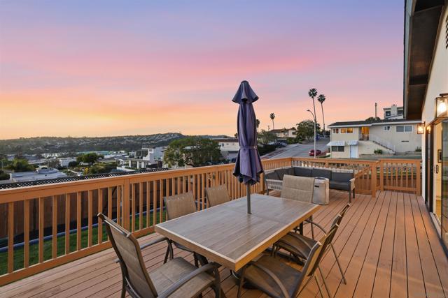 Stunning Bay Park home with ocean views from the kitchen, dining room, and living room - completely remodeled in 2021 and thoughtfully designed for modern coastal living. This single-level main residence offers 3 bedrooms + office and down below (with its own private entrance) is an attached studio ADU. Inside the main house are 2 beautifully updated bathrooms, including a luxurious primary suite featuring a spa-like bathroom with soaking tub and walk-in shower. The open-concept kitchen and living area flow seamlessly through two oversized sliders onto an expansive deck showcasing breathtaking, unobstructed views of Mission Bay, SeaWorld, and Mt. Soledad, perfect for indoor/outdoor entertaining. The property also includes a downstairs studio ADU, ideal for guests, rental income, or multigenerational living. Enjoy owned solar and virtually no electric bill. The large backyard offers ample space for a pool and additional ADU potential, while the corner lot provides optional RV parking. Successfully operated as a high-performing Airbnb in recent years, this home offers both lifestyle and investment opportunity.