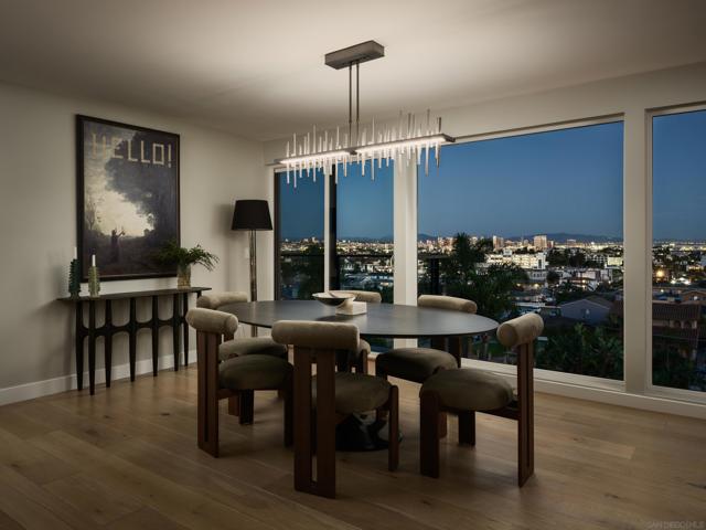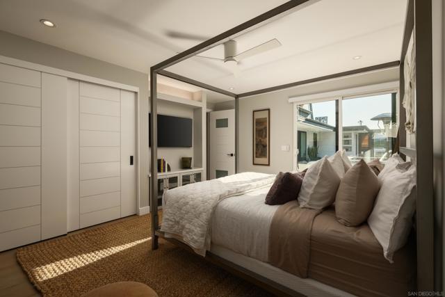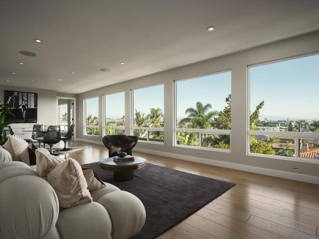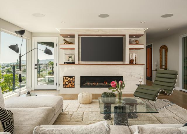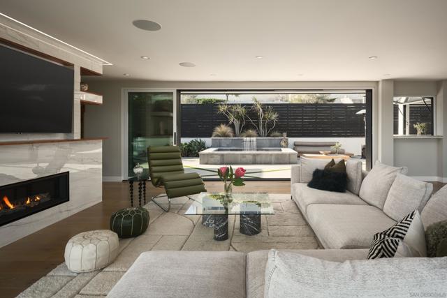 Newly constructed and thoughtfully designed, this modern coastal residence offers unobstructed panoramic views, elevated craftsmanship, and refined attention to detail throughout. A secure, private entry with custom pivot door opens to a tranquil courtyard featuring an oversized spa, creating a seamless indoor/outdoor retreat. Expansive La Cantina stacking doors effortlessly connect the courtyard to the open concept living, dining, and chef’s kitchen, which features premium appliances and custom hydraulically operated window countertops, ideal for entertaining. The main level showcases a spacious primary suite with a floor to ceiling fireplace and an 18’ La Cantina stacking door capturing sweeping views from Mission Hills to Cabrillo and extending south to Mexico. The spa inspired marble and walnut bath offers a statement soaking tub, steam shower, and generous walk in closet. Two additional guest bedrooms, a full bath, and a dedicated laundry room complete the level. The upper level features an entertainer’s lounge with wet bar, Perlick refrigerator, ice maker, dishwasher, and full bath. A 14’ folding La Cantina door opens to an expansive rooftop deck with built in BBQ and cooktop, perfect for hosting and sunset harbor views. The lower level features an expansive guest suite with separate entrance, a sprawling open living area, two full baths, and access to multiple outdoor entertaining areas. Ideally located walking distance to pristine beaches, restaurants, coffee shops, and the waterfront harbor, with quick access to San Diego International Airport and downtown San Diego, this residence delivers an exceptional blend of luxury, lifestyle, and convenience.