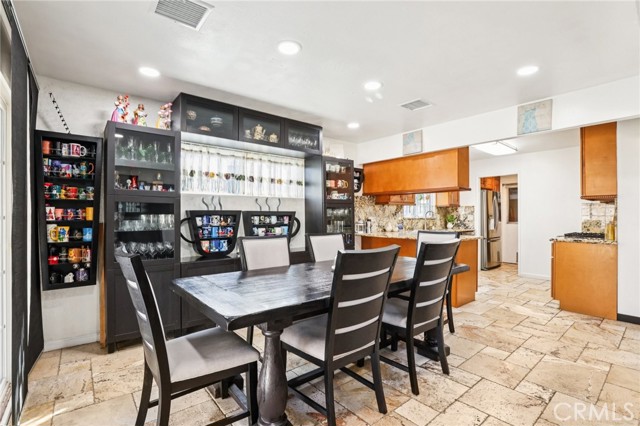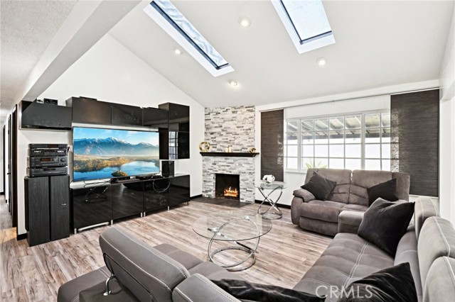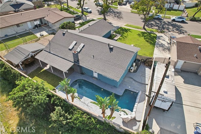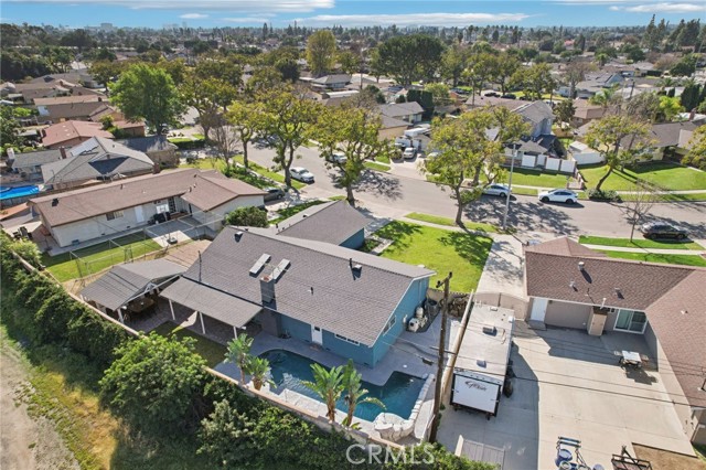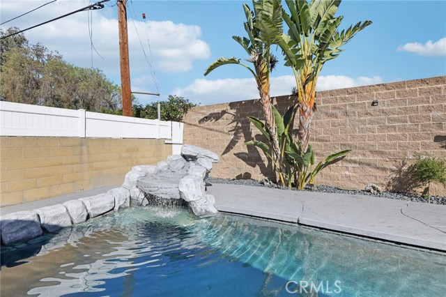 A stunning 1 story home nestled in the charming city of Anaheim, CA. Boasting an inviting façade and exceptional curb appeal, this 4 bedroom, 2.5 bathroom home is a perfect blend of comfort and for anyone that loves to entertain or live outside and enjoy the California outdoor living! Step inside to discover a light-filled interior, where high vaulted ceilings adorned with skylights set the stage for an airy and open ambiance. The living room, featuring a cozy fireplace, seamlessly flows into the dining area and kitchen, creating an ideal space for entertaining and family gatherings. The kitchen is a chef's dream, equipped with stainless steel appliances, an abundance of cabinets, and ample counter space. Sliding doors from the dining room lead to a backyard oasis that is sure to impress. The covered patio is an entertainer's delight, overlooking the pristine saltwater pool with its enchanting waterfall and relaxing Baja shelf. Beyond the pool lies an oversized, custom Gazebo Room/Outdoor Kitchen, complete with double refrigerators, stove-top cooking, a built-in barbecue, and plentiful counter space for hosting unforgettable parties. The home's backyard is further enhanced by a several citrus & fruit trees. Each bedroom offers a tranquil retreat, complete with ceiling fans and solid wood doors. The hallway bathroom has been updated beautifully. The Primary Bedroom has its own en suite bathroom that also has been updated. Not to be overlooked, this property features a newer AC/furnace and ducting system, updated within the last five years. Other recent upgrades like outdoor pavers and the covered kitchen gazebo. With its two-car attached garage, additional oversized shed, and proximity to shopping, parks, dining, schools, and freeways, 502 Mancos is more than just a home—it's a lifestyle waiting to be embraced. Don't miss the opportunity to make this beautifully maintained residence your own.