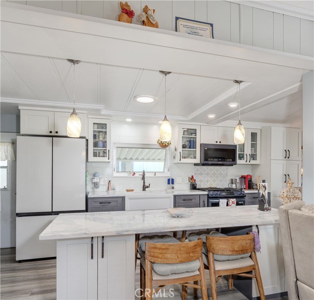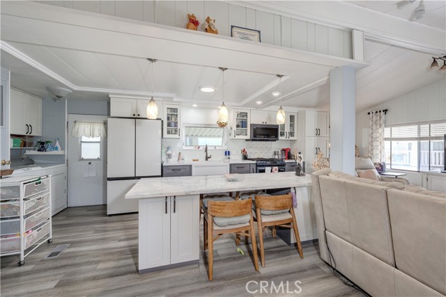 Surf City Beach Cottages is thrilled to showcase a beautiful 2-bedroom, 2-bathroom coastal retreat. The heart of the home is its elegantly remodeled kitchen, which features an expansive marble island, perfect for casual meals and gatherings, complemented by exquisite marble countertops, a charming farmhouse sink, and a casement window that invites the natural light to pour in. The stylish glass tile backsplash adds a contemporary touch to this gourmet space. This home exudes warmth with luxury vinyl flooring, freshly painted walls, and an inviting atmosphere throughout. Enjoy the practicality of an indoor laundry area that makes everyday tasks a breeze. For relaxation and leisure, you can unwind in one of the two enclosed gazebo rooms or host memorable gatherings in the outdoor space, ideal for entertaining in the heart of Surf City, USA. The property also features carports that offer a protective shelter for your vehicles. Residents can take advantage of a range of community amenities, including a sparkling pool for refreshing swims, a well-equipped gym for your fitness routine, a welcoming clubhouse for social events, and a dedicated dog walking area for your furry companions. Situated just a leisurely stroll away from Pacific City, you'll have access to a vibrant scene of dining, shopping, and entertainment. Moreover, the world-renowned Huntington Beach pier and pristine beaches are practically on your doorstep. Experience the exhilarating Pacific Air Show from your own front-row seats each year, and don't miss the enchanting sights and sounds of the famed Huntington Beach 4th of July parade and fireworks show, all just moments away from your new home.