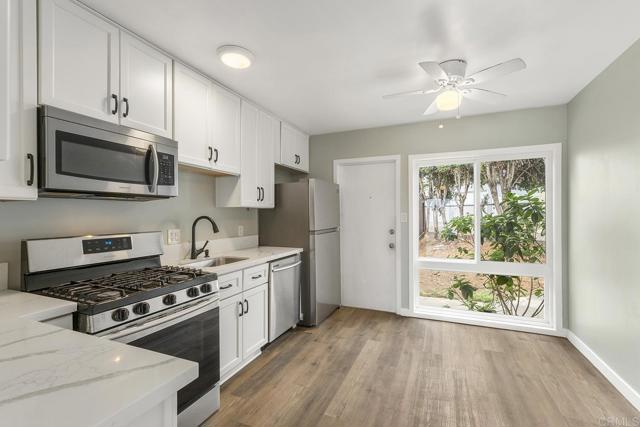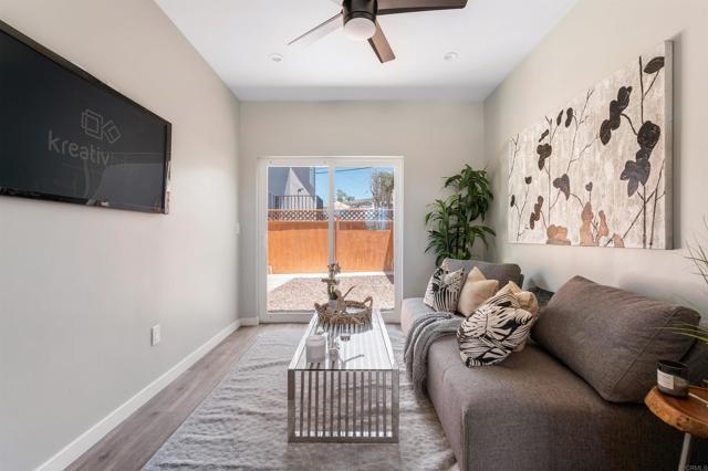 Wonderful 4-unit property in the Bay Park area. All 4 units are turnkey and fully occupied. Property consists of 3 -2 bed/1 bath homes and 1 - 1 bed/1 bath home. All have private yards and all renovated in 2022. All kitchen and baths come with quartz counter tops, stainless steel appliances, LVP flooring throughout. All 4 come with their own in unit washer & dryers. All 4 units are individually metered for Gas & Electric. Front building consists of 2 matching units (2 bed/1 bath) and the middle unit is a converted garage to the 1 bed/1 bath unit. The back building was added a few years ago with a downstairs garage with two separate 1 car garages and upstairs is a 2 bed/1 bath unit with a panoramic view of Mission Bay and the ocean. The tenants in the upstairs unit get the use of one of the 1 car garages and one unit in the front gets the use of the other 1 car garage and driveway. One water bill for the property. All tenants pay an additional $45 per month for water bill which averages about $400 every other month.