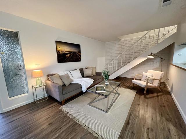No one above you or below! Updated townhome with attached closed 2- car shared garage and private storage. New hard surface flooring on the lower level and plush new carpet on the upper level. Freshly painted, new stainless steel appliances, and ready for its new homeowner. Get out of the rental rut and come take a look at this fabulous townhome in the heart of it all. Walk to town center with Target, coffee, shops, trolly, & restaurants; near Costco, Trader Joes, Parks and close to all major freeways. Laundry attached to garage and a Community pool. Complex is VA approved and FHA eligible.
