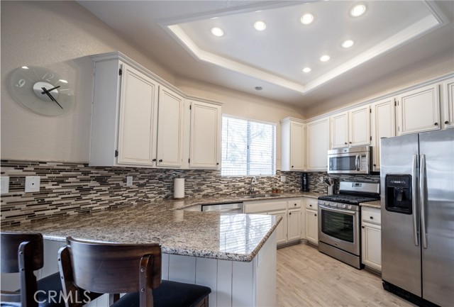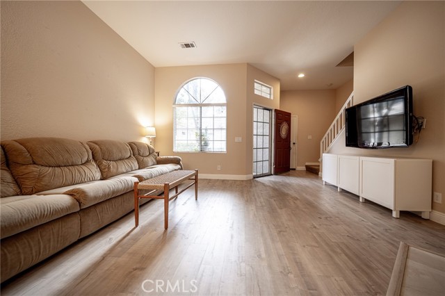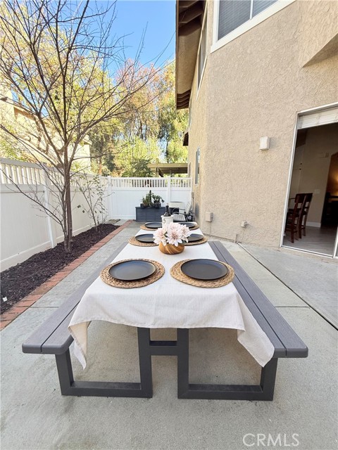 Welcome home to this open floor plan condominium, in the sought-after city of Laguna Hills! As you enter, you are welcomed with effortless sophistication in this stunning condominium, new flooring, and aesthetically selected paint color scheme. The expansive layout seamlessly connects the living, dining, and kitchen area. The wide open family room is set up with a contemporary fireplace, creating a pleasing ambiance for relaxation, quiet evenings, or family gatherings with convenient access to a half bath. The gourmet kitchen is a chef’s delight, appointed with classic cabinetry, gleaming countertops, and stainless-steel appliances. Whether you are hosting friends or savoring a quiet morning, the sizeable island provides space for memorable moments. Upstairs, the home offers three generously sized bedrooms and multiple upgraded bathrooms. Retreat to the tranquil, spacious master suite with high ceilings, plush carpeting, a walk-in closet, a double sink vanity with ample counter space, and a glass-enclosed shower. The two large sized bedrooms are filled with natural light from multiple windows and offer abundant closet space. The hall bathroom includes a dual-sink vanity and a shower-tub combination. Step outside to a spacious private patio—perfect for family celebrations, barbecues, or simply relaxing outdoors. The seamless indoor-outdoor flow enhances the home’s appeal, making it ideal for year-round enjoyment. Pride of ownership shines throughout this beautifully maintained condo. Don’t miss the opportunity to make this exceptional property your own.