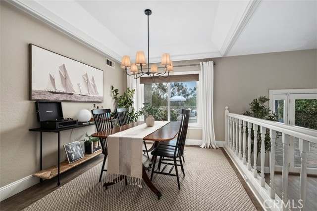Perched in the peaceful Los Corrales neighborhood of San Juan Capistrano, this expansive 4-bedroom, 3-bath home offers striking views, exceptional privacy, and a thoughtfully designed multi-level layout spanning approximately 2,885 sq ft. From the moment you step inside, soaring ceilings and abundant natural light create an open, airy atmosphere that carries throughout the home. Designed with both comfort and style in mind, the interior features updated flooring, fresh paint, architectural details, and well-proportioned living spaces ideal for gathering or unwinding. The main living areas flow effortlessly, with multiple vantage points to enjoy the surrounding hillsides and outdoor scenery. The kitchen serves as a central hub of the home, offering granite countertops, stainless steel appliances, a generous island with gas cooktop, walk-in pantry, and a casual dining area that connects seamlessly to the adjacent family room—perfect for everyday living or hosting guests. French doors extend the living space outdoors to a private backyard retreat. Set on an approximately 10,440 sq ft lot, the backyard is a true sanctuary featuring custom hardscape, mature landscaping, fruit trees, a calming fountain, and a raised deck ideal for taking in the panoramic mountain views and sunsets. The setting offers a rare sense of seclusion while remaining close to everything. A bedroom and ¾ bathroom on the main level provide flexible use for guests, multigenerational living, or a home office. Upstairs, three additional bedrooms are complemented by two bathrooms, including a recently upgraded upstairs bath with new quartz countertops, sinks, and modern fixtures. The spacious primary suite is a standout, offering tranquil views, a sitting area, a large walk-in closet, and a spa-inspired bathroom with soaking tub, dual vanities, and a separate tiled shower. Additional highlights include a 2-car garage with laundry hookups and overhead storage, epoxy flow re-pipe, newer roof, updated HVAC system, and completed termite clearance for added peace of mind. Conveniently located near parks, schools including St. Margaret’s, golf courses, shopping, and historic downtown San Juan Capistrano, this home blends space, privacy, and long-term value in one of the area’s most desirable communities.